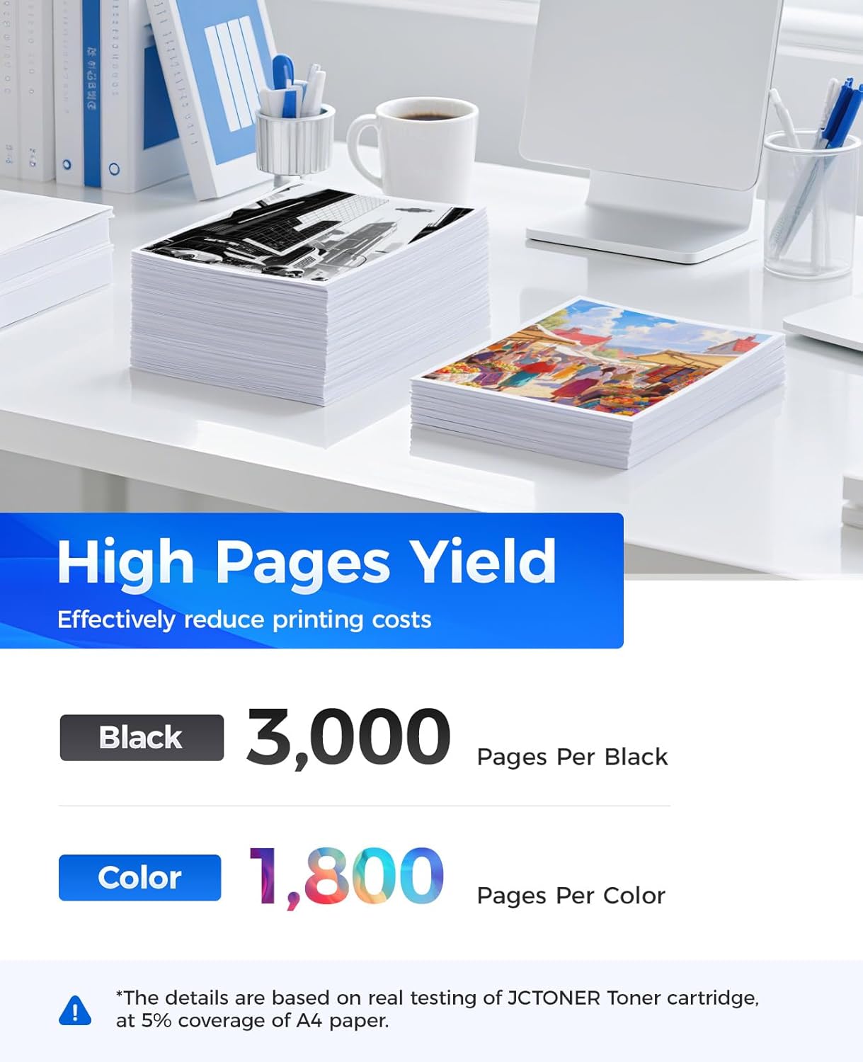 • High-Yield: up to 3,000‬ pages per TN431 Black and 1,800 pages per TN431 Color (Total 10,400 pages, 5% coverage).