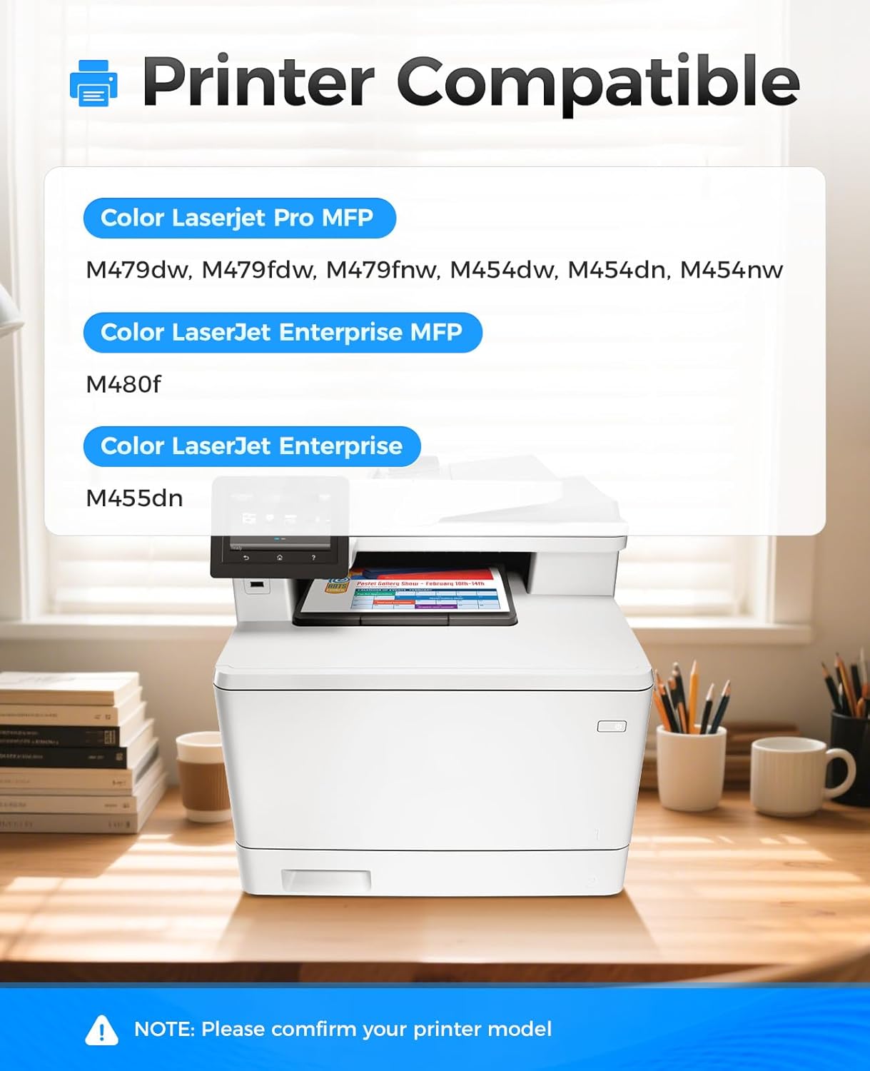 • Compatible Printers: Compatible with HP Color Laserjet Pro MFP M479dw M479fdw M479fnw M454dw M454dn M454nw; Color LaserJet Enterprise MFP M480f M455dn Printer.