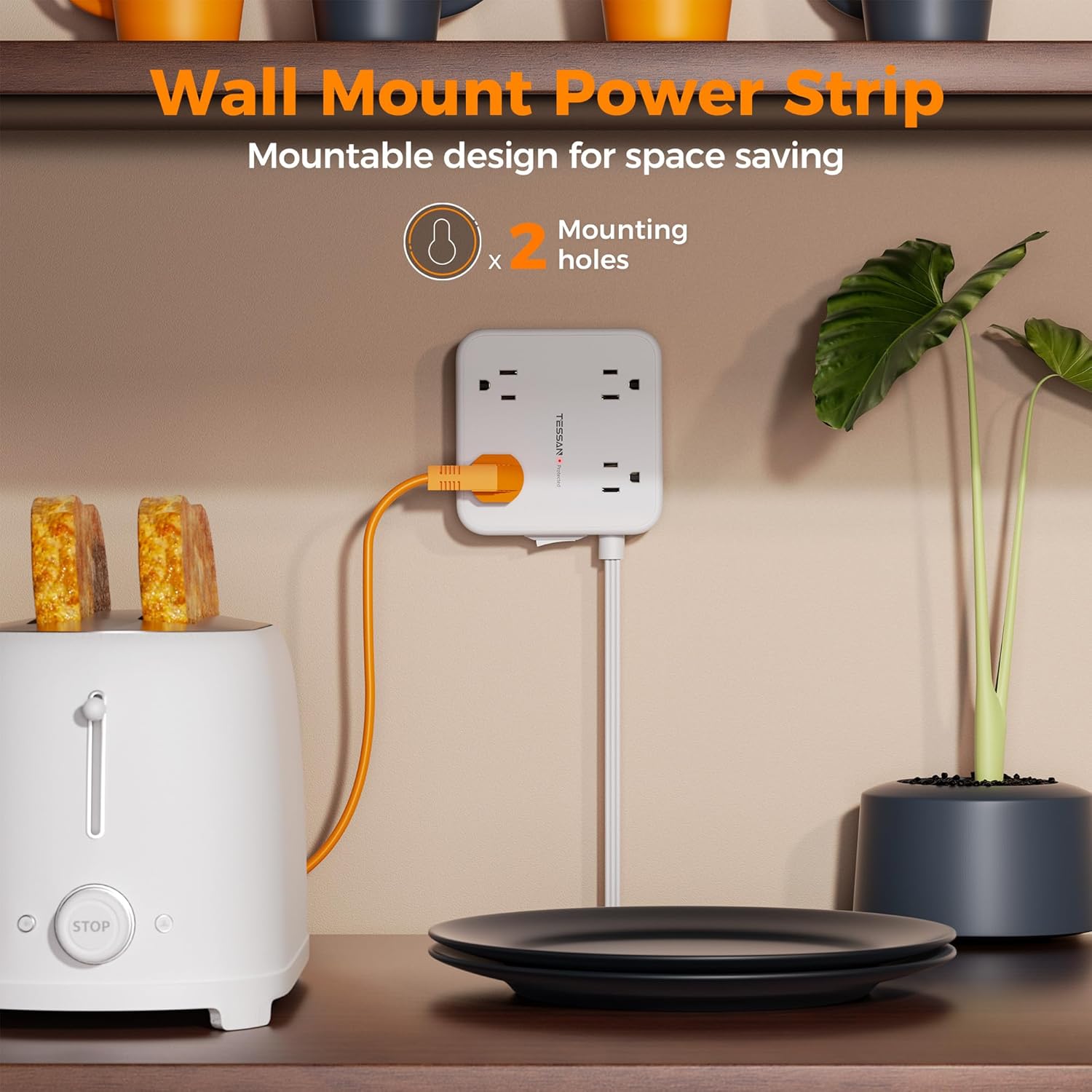 • 11 in 1 Power Strip: This mountable power strip can turn 1 socket into 8 AC outlets (1250W Max) and 3 USB ports, charge 11 devices simultaneously without blocking; Extension cord with multiple outlets suitable for various indoor spaces