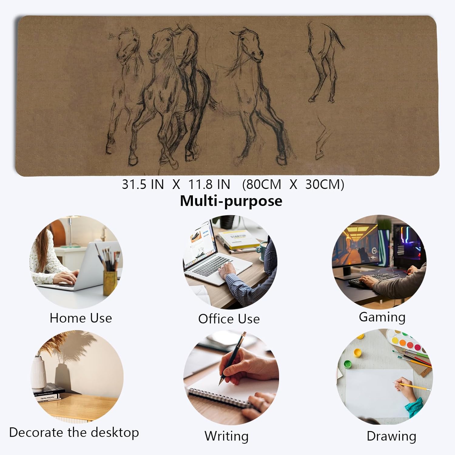 Vintage Western Mouse Pad,Retro Horse Desk Mat for Laptop,XL Large Vintage Mid Century Grey Abstract Art Mouse Pad for Home Decor Office Dorm, Horse Decor for Desktop 31.5x11.8 Inch
