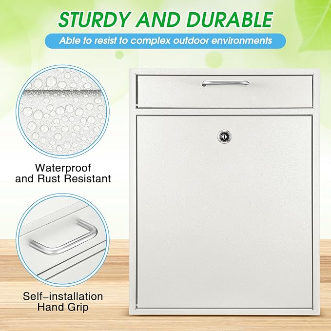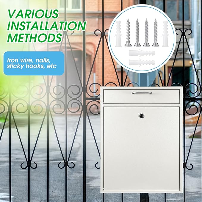 • Quality Material: crafted from quality metal material, this robust mail drop promises reliability; The wall mount mailbox is coated with plating which prevents peeling off paint and rust, extending the product's service life