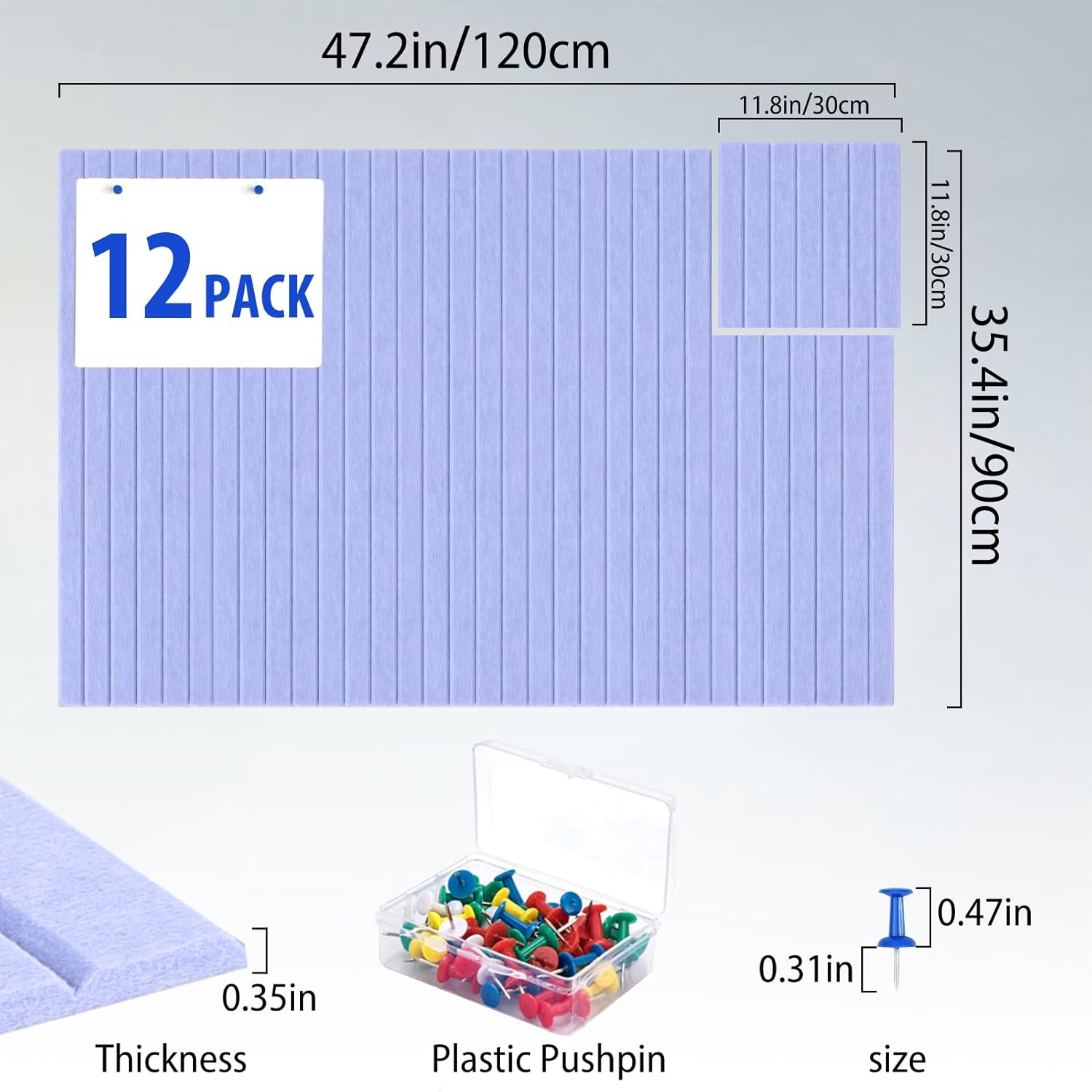 Cork Boards for Walls 48" x 36" Felt Board Alternative, 12 Pack Felt Wall Tiles Bulletin Board, Large Cork Board for Office Pin Board Tack Board Cork Boards