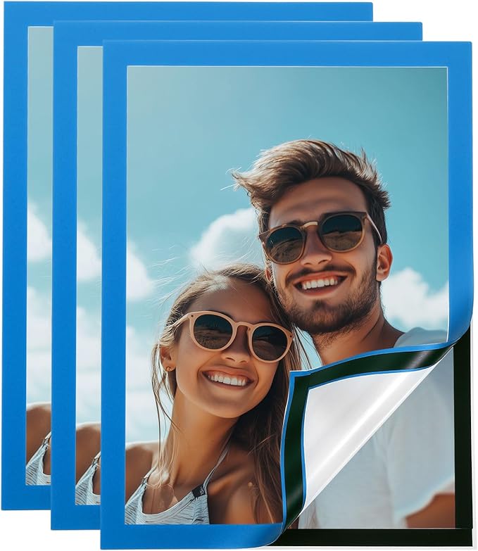 uxcell 3 Pcs Magnetic Sign Holder, 8.3" x 11.7" Self-Adhesive Magnetic Wall Signs Holder Magnetic Picture Frame Document Holder for Home Office Wall Window Displays, Sky Blue