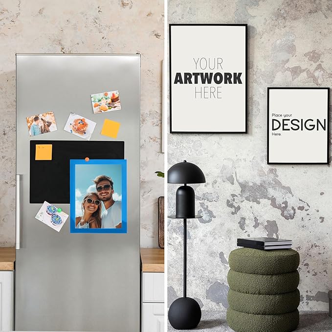 • Self-adhesive and No Drilling Required: This magnetic photo frame comes with an adhesive on the back, peel off the protective film from the self-adhesive backing, and then press the sign holder firmly onto the desired surface, easy to replace, it can be attached to any smooth, solid surface, such as refrigerators, glass, doors, wooden boards, compartments, tiles, etc