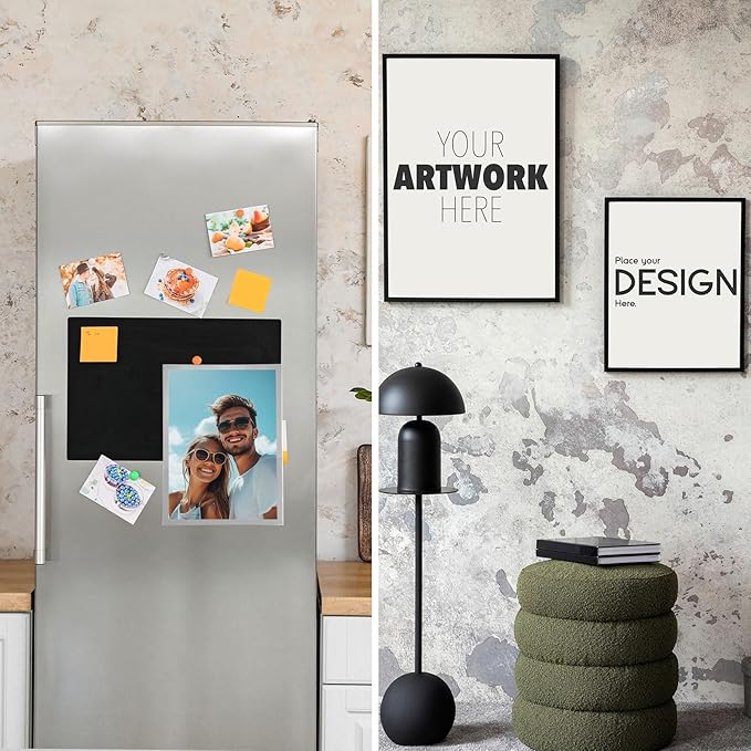 • Self-adhesive and No Drilling Required: This magnetic photo frame comes with an adhesive on the back, peel off the protective film from the self-adhesive backing, and then press the sign holder firmly onto the desired surface, easy to replace, it can be attached to any smooth, solid surface, such as refrigerators, glass, doors, wooden boards, compartments, tiles, etc
