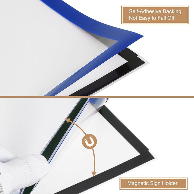 • Waterproof and Magnetic: The magnetic sign holder consists of durable magnetic backing and a waterproof PVC frame, the magnetic component ensures secure attachment to surfaces, is not easy to fall off, and the PVC material is designed to protect items from damage and wear