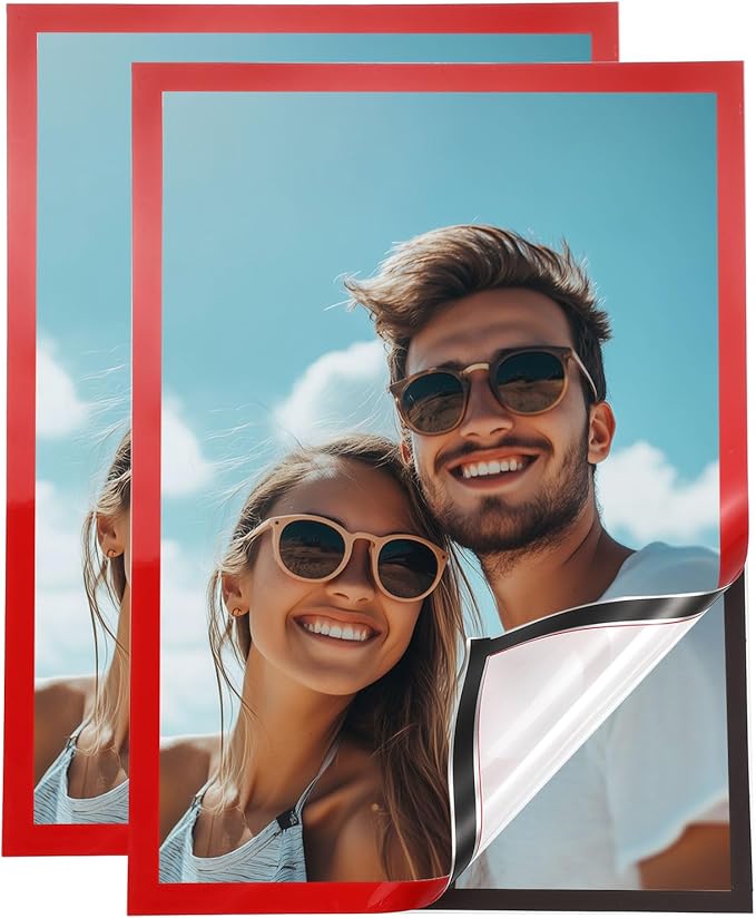 uxcell 2 Pcs Magnetic Sign Holder, 11.7" x 16.5" Self-Adhesive Magnetic Wall Signs Holder Magnetic Picture Frame Document Holder for Home Office Wall Window Displays, Red