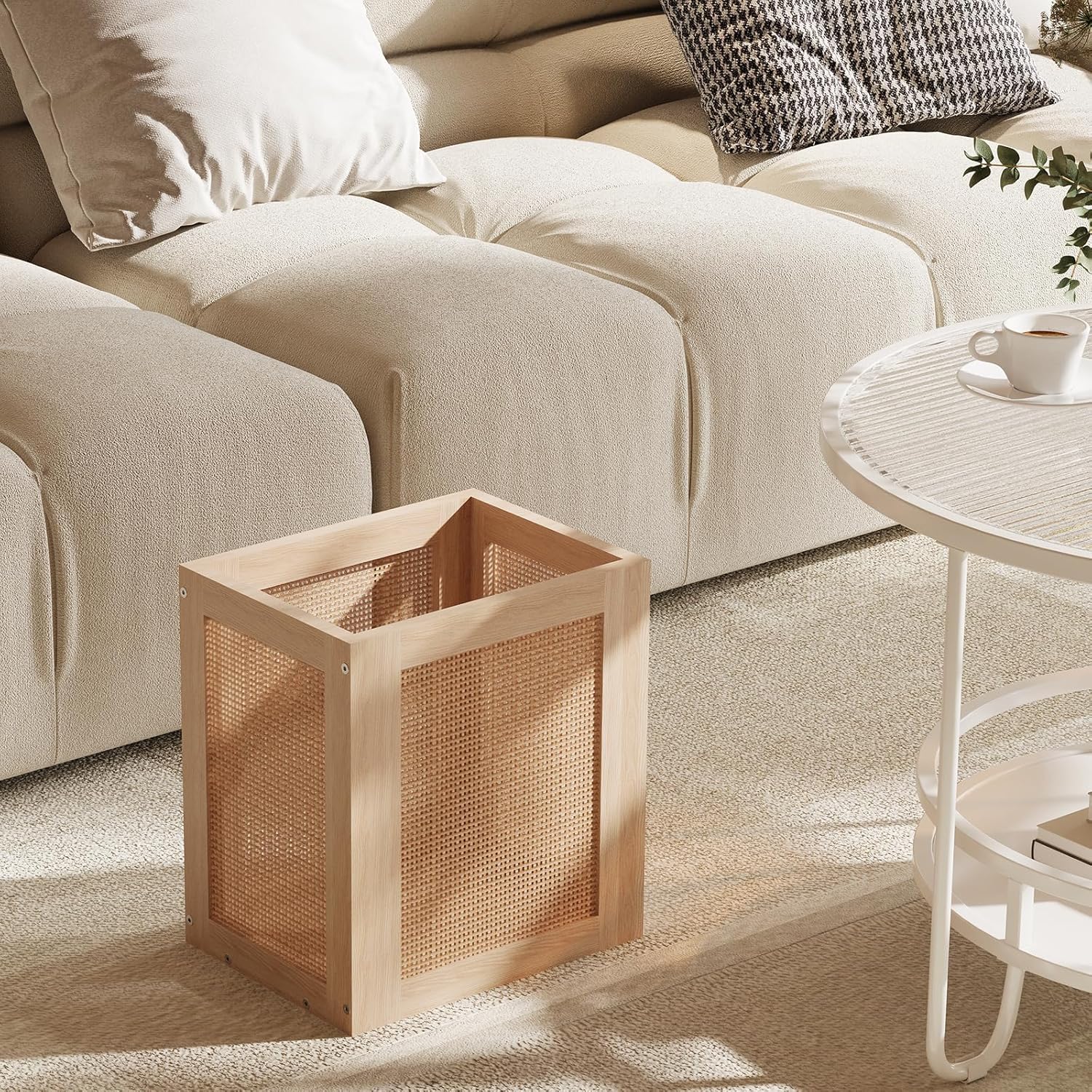 • 【Easy to Clean and Maintain】The small trash can surface is smooth, waterproof and stain-resistant. The wooden part has been specially treated to be moisture-proof and moth-proof, and it remains as new after long-term use.
