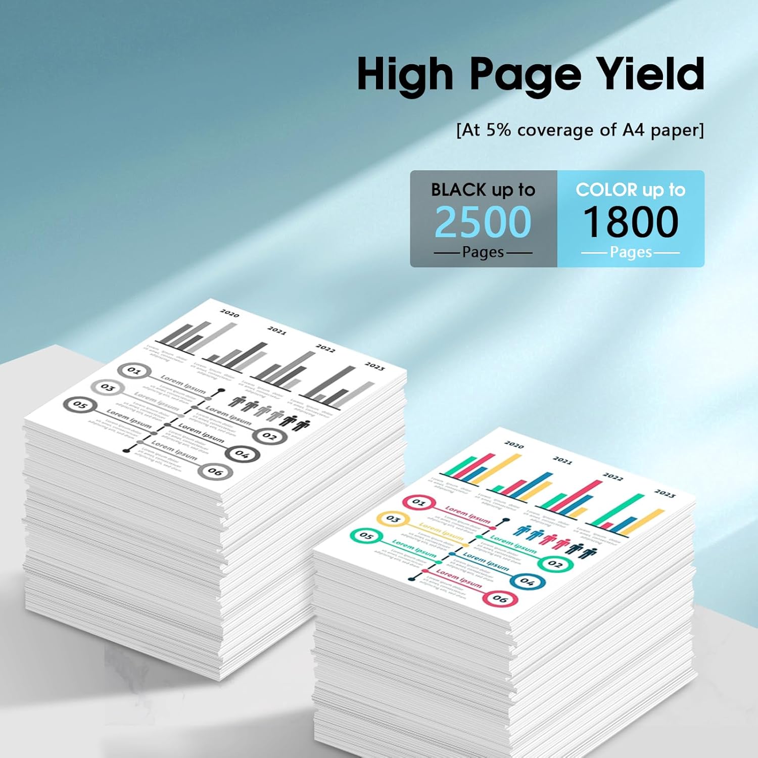 • High Page Yield: 936e Black Ink Cartridges Is 2500 Pages, 936e Cyan Magenta Yellow Ink Cartridges Is 1800 Page(Letter/A4, at 5% coverage)