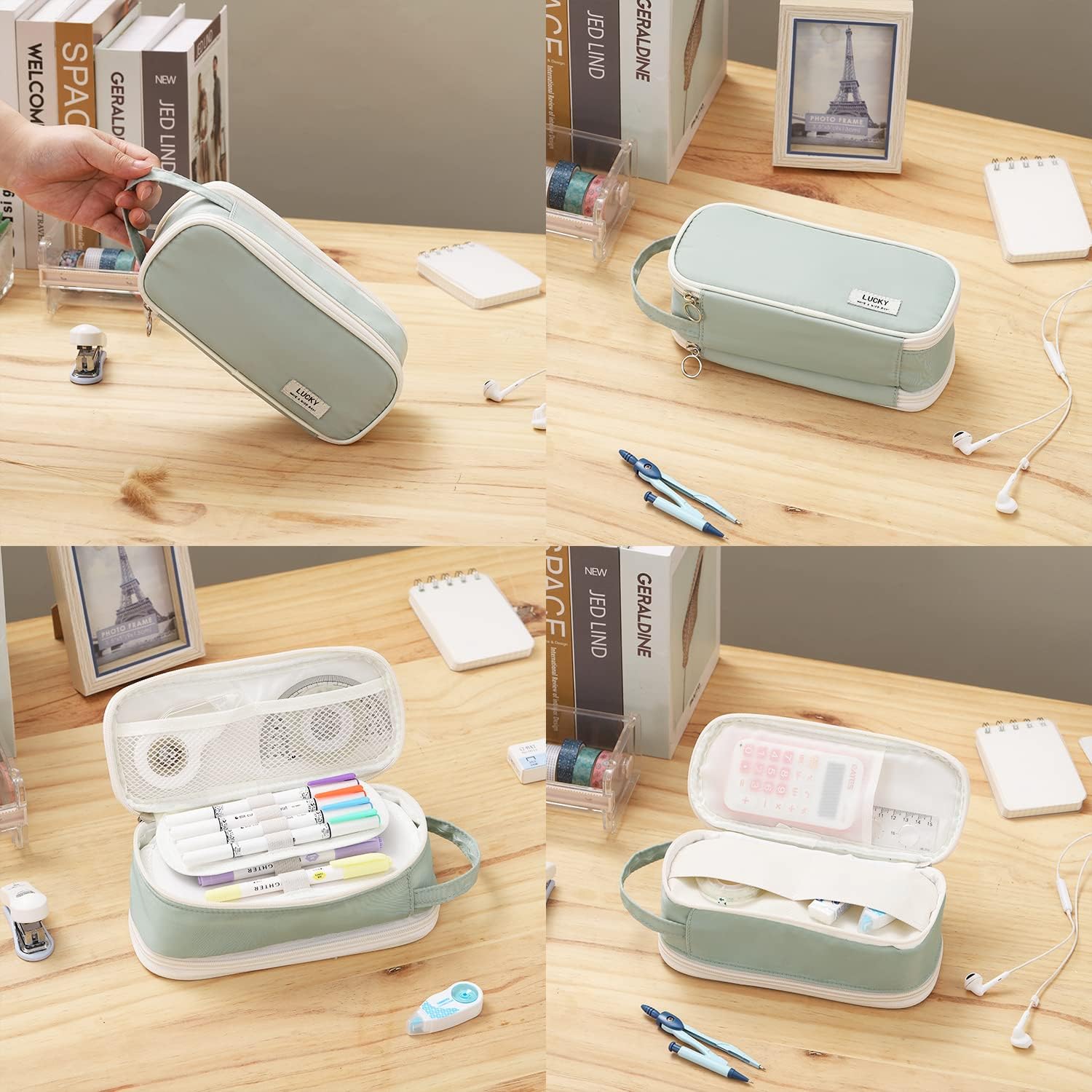 Dugio Big Pencil Case for Girls Teens Kids Zipper Pencil Pouch with Handle Organizer Pencil Bag Aesthetic Pencil Box for School Green