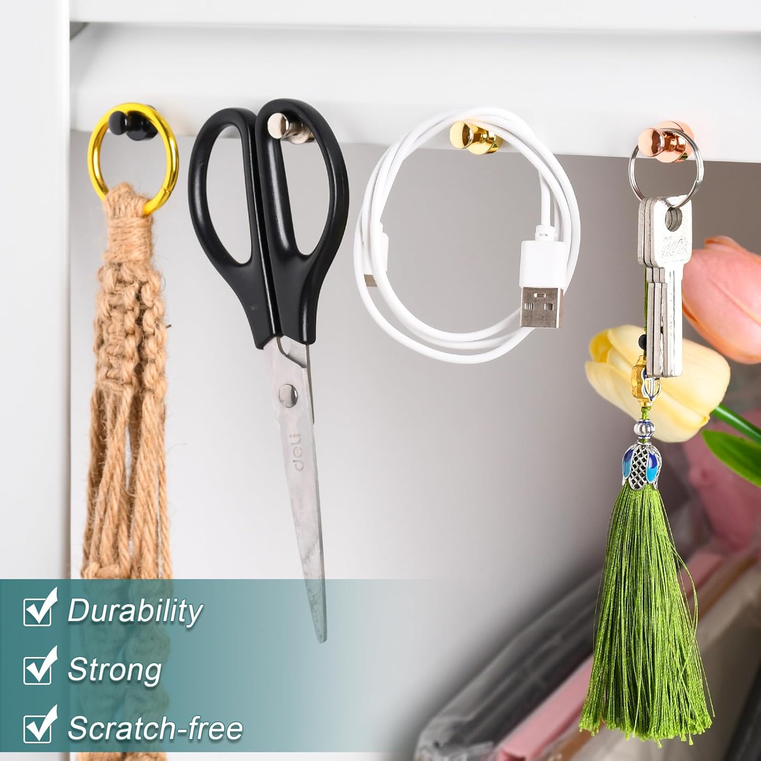 • 【4 DIFFERENT COLOR】Total of 50 pcs small magnet, 4 different color rare earth magnets strong included silver x 15pcs, black x 15pcs, gold x 10pcs and rose gold x 10pcs. small push pin magnets strong for your choices. You can use fridge magnets in office, tool storage or kitchen tool hanging.