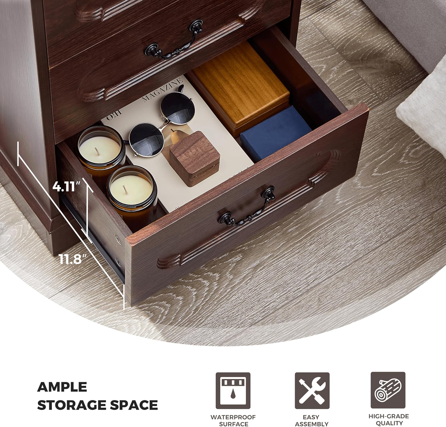 • 3 Drawers Bedroom Dresser- Dimensions: 26.2"(H) x 17.7"(W) x 15.7"(D). Dressers for bedroom features 3 wooden drawers (Size: 15.35''W x 11.8''D x 7''H) which provides ample storage space for your bedroom, kidsroom, guest room, closet, hallway or living room, keeping your clothes and essentials organized and easily accessible