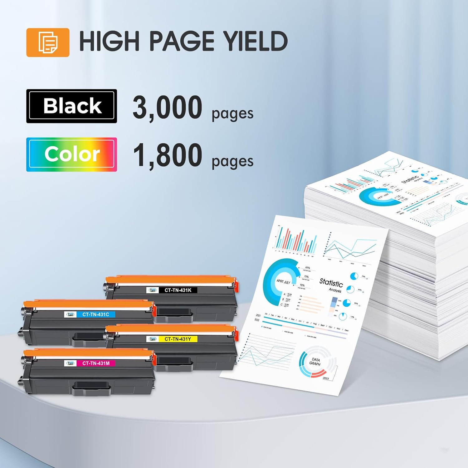 • TN-431 TN 431 TN431 toner Cartridge 4 Pack deliver superior printing results with vivid colors and clear prints
