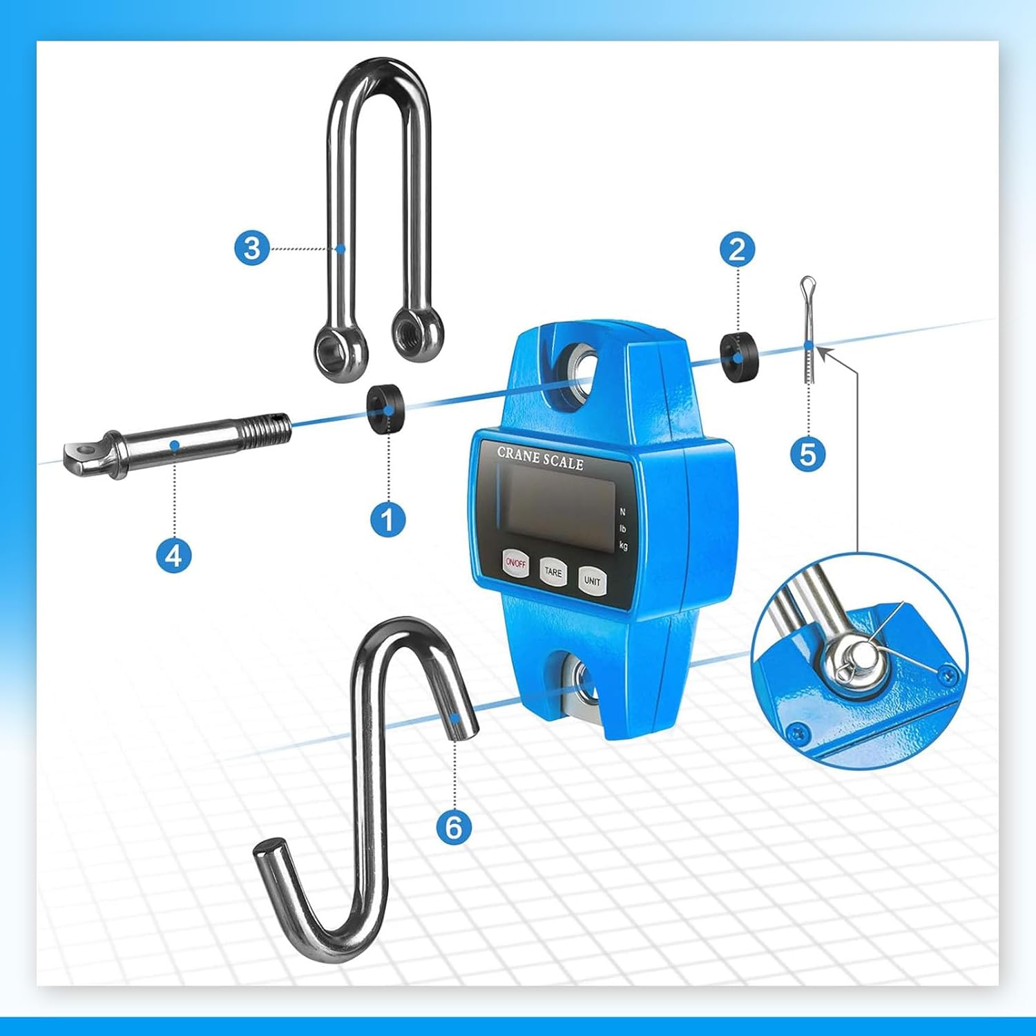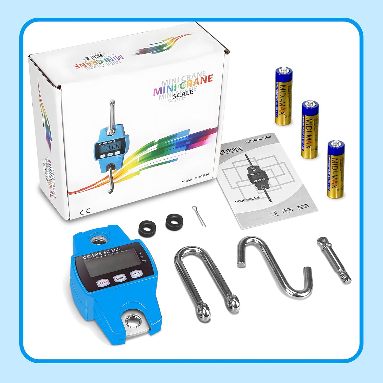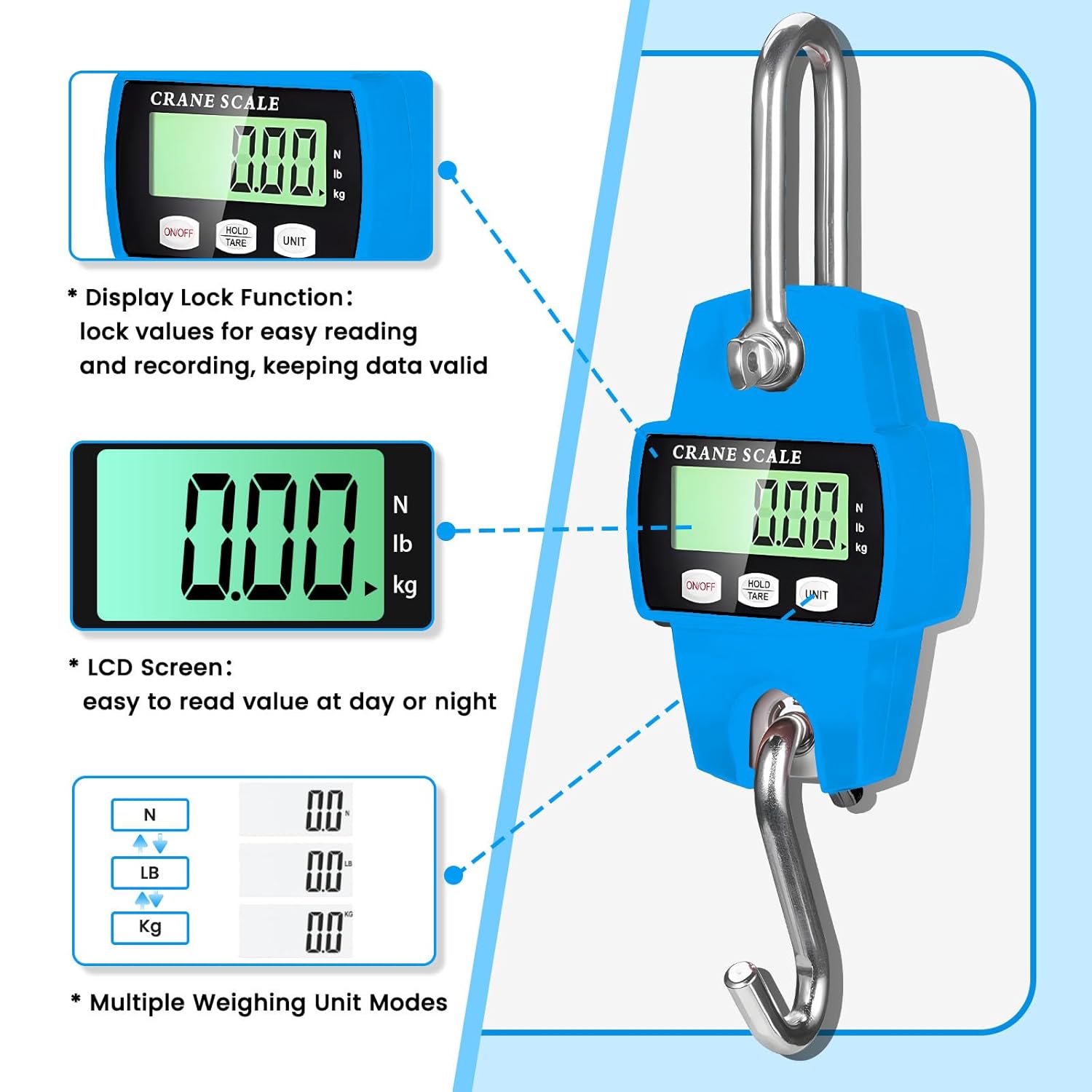 Digital Hanging Scale, 1102lb Crane Scale, 500kg Blue Digital Electronic Weighing Scale with LCD Display for Hunting, Outdoor, Bass Fishing, Big Game, Farm