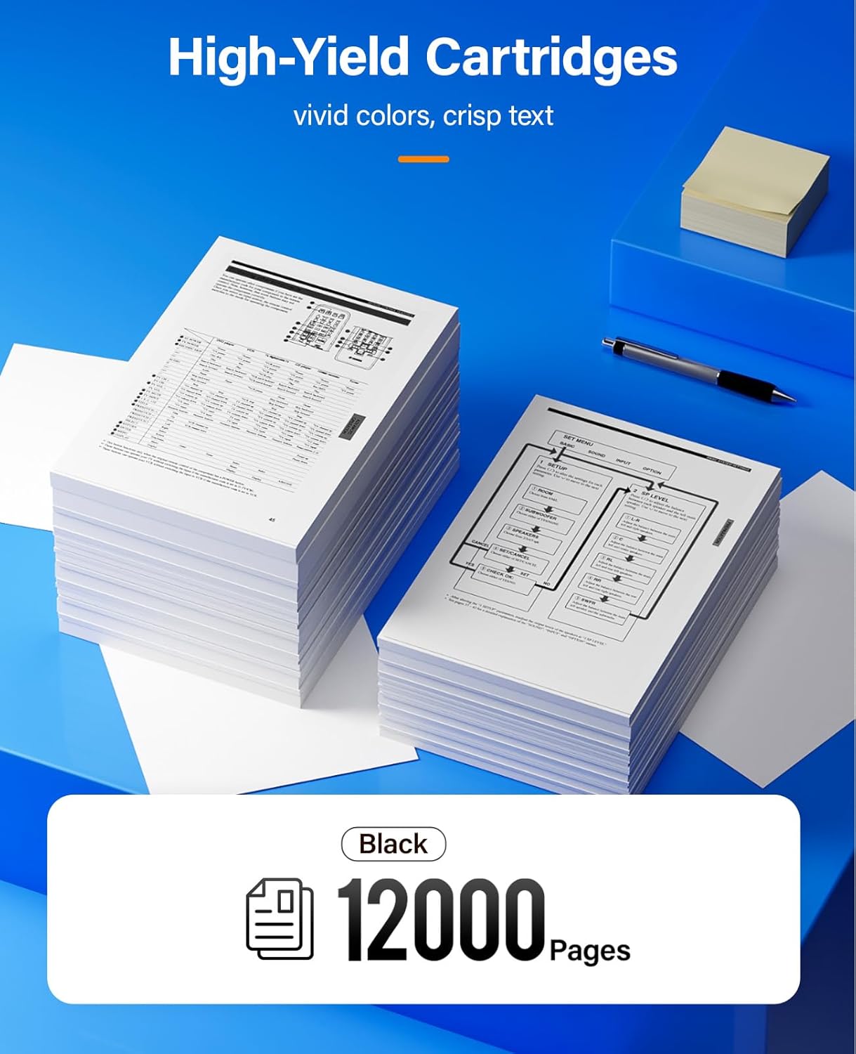 • High Yield Pages: 12,000 pages per black cartridge, up to 24,000 pages with 2 cartridges (A4, 5% coverage)