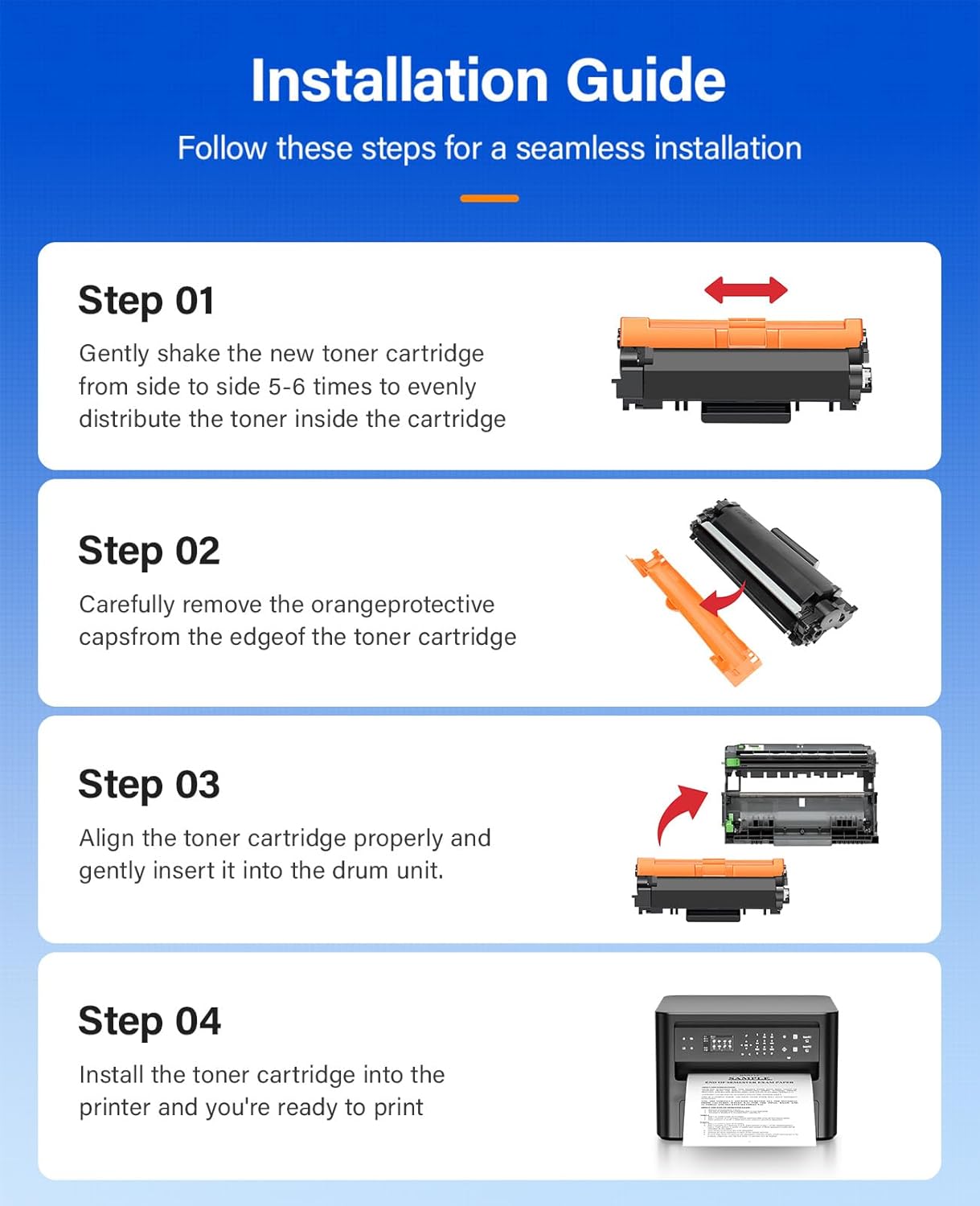 • Compatible Printer: Compatible with Brother DCP-L2550DW, DCP-L2551DW,HL-L2325DW, HL-L2350DW, HL-L2370DW, HL-L2370DW XL, HL-L2390DW, HL-L2395DW, MFC-L2690DW, MFC-L2690DWXL, MFC-L2710DW, MFC-L2717DW, MFC-L2730DW, MFC-L2750DW, MFC-L2750DW XL (Please check that your printer model matches the printer model of this toner cartridge before placing an order)
