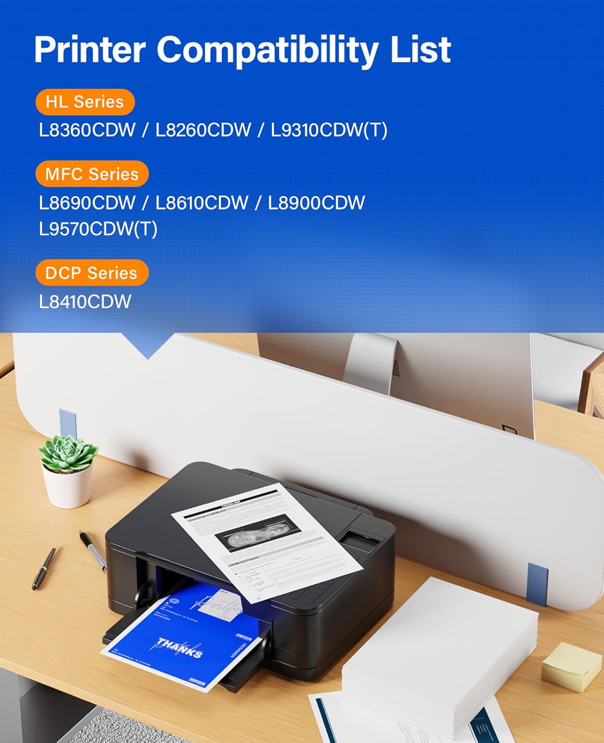 • Compatible Printer: Compatible with Brother HL-L8360CDW,HL-L8260CDW,HL-L9310CDW(T), MFC-L8690CDW,MFC-L8610CDW MFC-L8900CDW MFC-L9570CDW(T), DCP-L8410CDW (Please check that your printer model matches the printer model of this toner cartridge before placing an order).