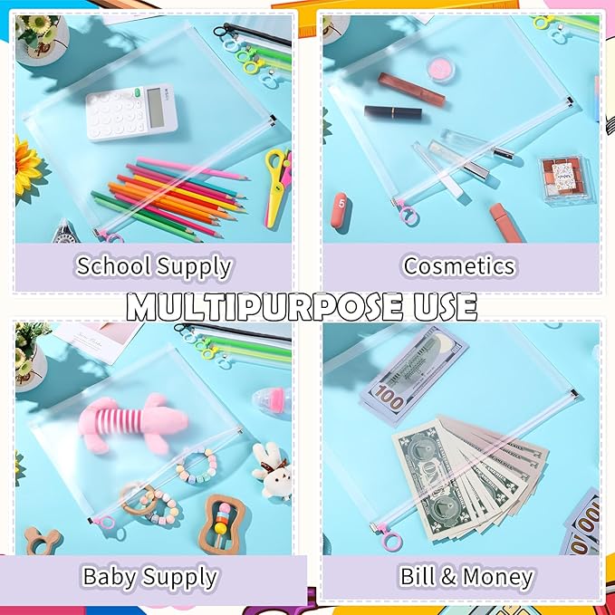 Yexiya 30 Pcs Back to School Clear Plastic Zip Envelope A4 Zipper Document Folder 13 x 9.7In File Folder Expanding Envelope Pouch for Paper Pencil Storage Office Supplies (Stylish Colors)