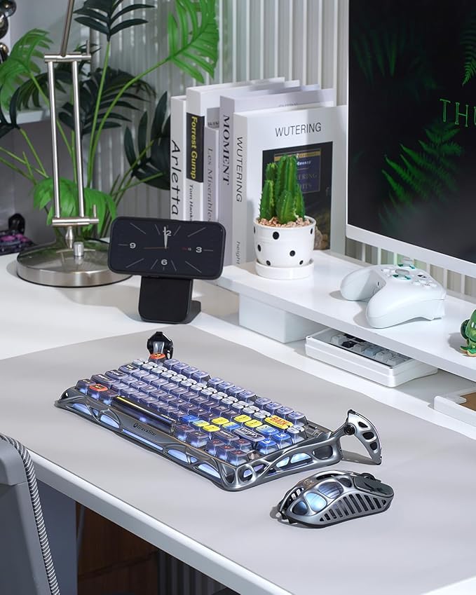 • ⚒️ Futuristic Design & Premium Build - The Mercury K1 Pro features a unique, finish with a sturdy aluminum alloy frame, combining durability and portability. Its skeletal frame design not only looks stunning but also stabilizes every keystroke, making it a perfect blend of art and functionality.