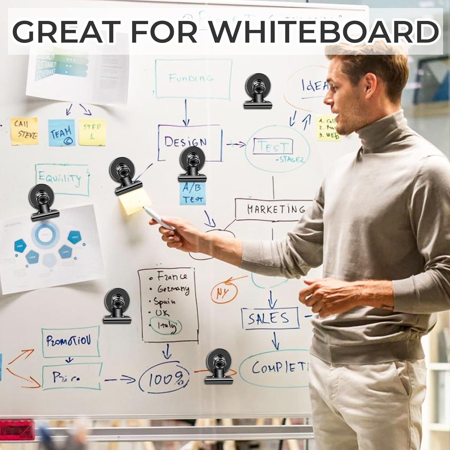 • Strong and Secure: Experience the power of heavy-duty magnetic clips. Safely hold over 25 sheets of A4 paper, preventing slips or falls on any metal surface.