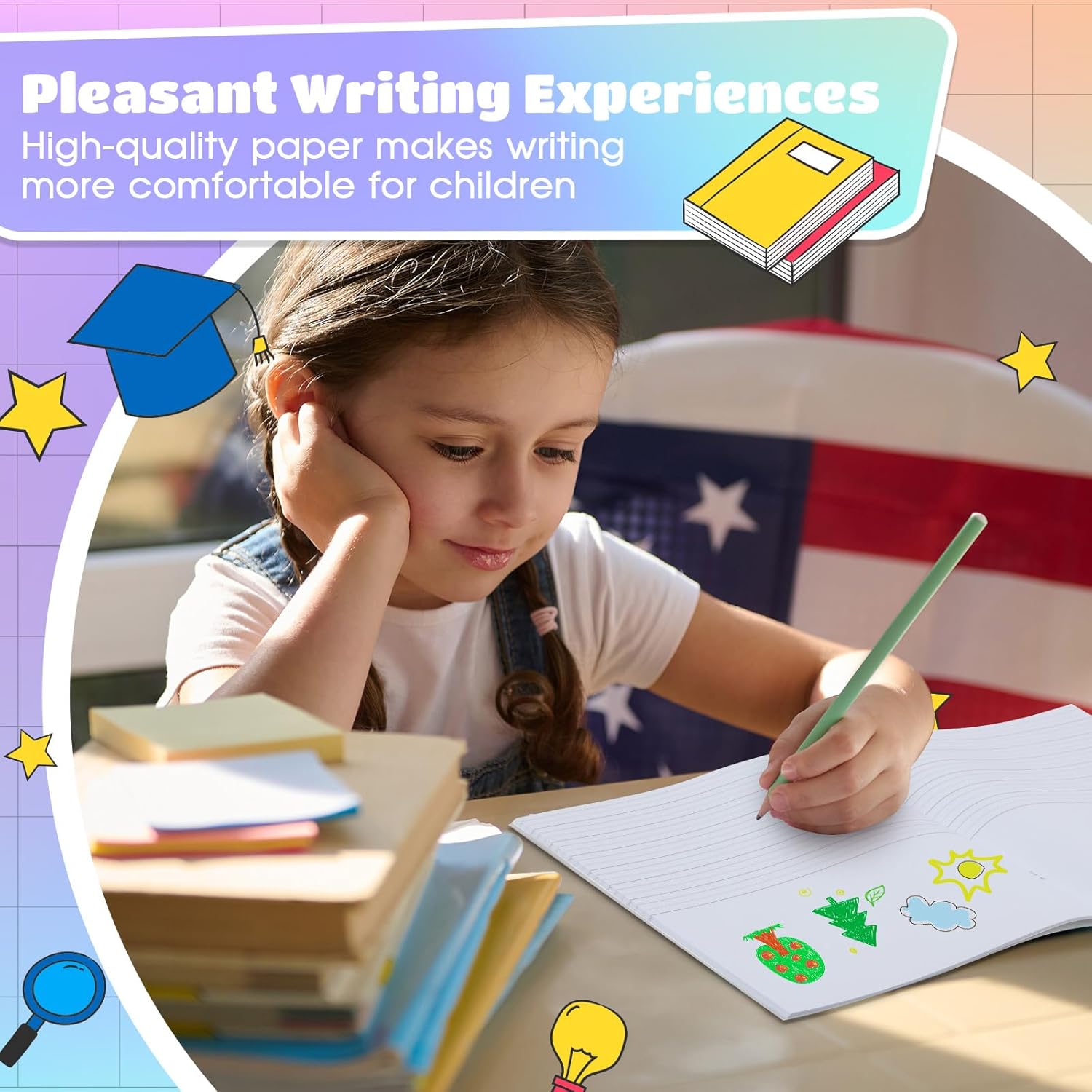 • Quality Paper Material: made of quality paper material, our primary notebook come with soft covers and thick white pages that are sturdy and tear resistant; This ensures long term usage and pleasant writing experiences, prioritizing safety and quality for both kids and students