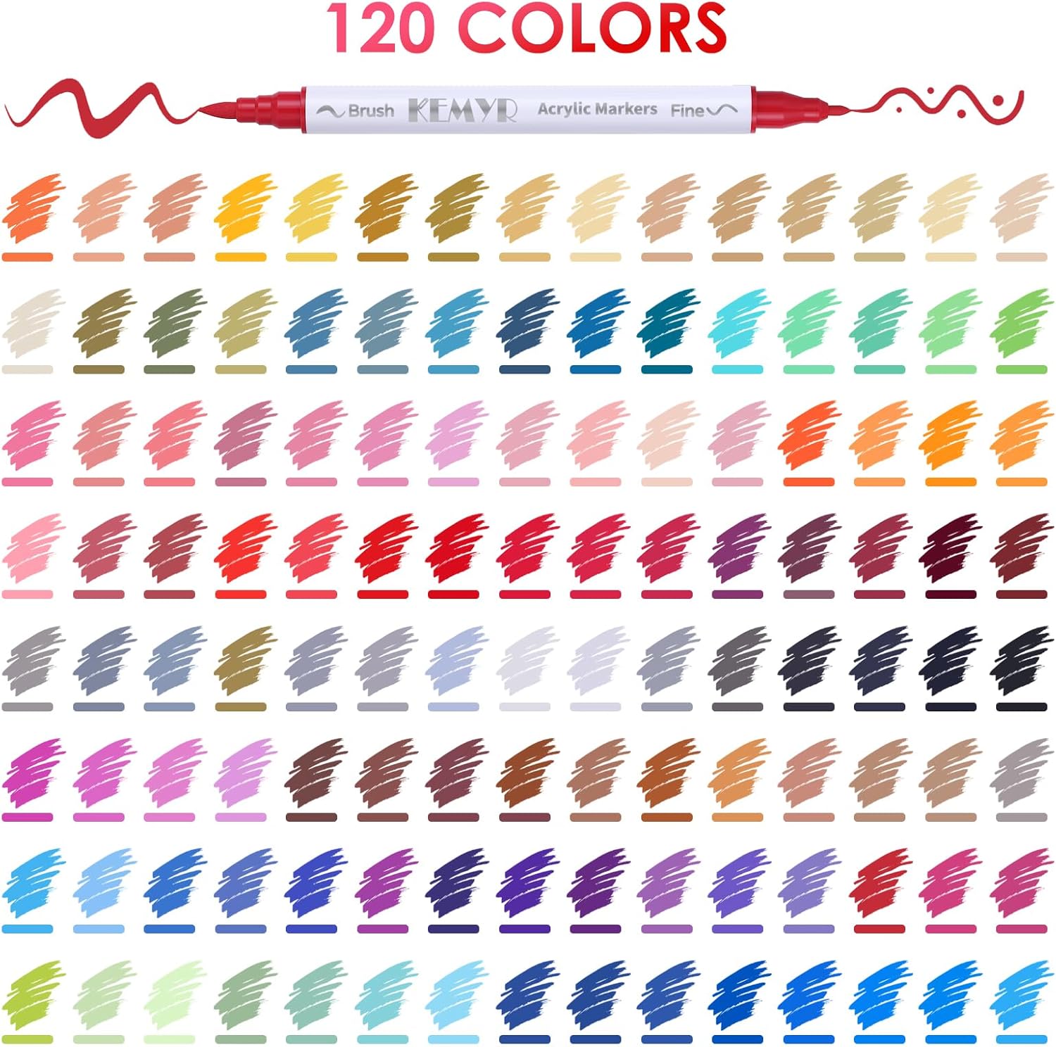 120 Colors Brush & Fine Tip Acrylic Paint Pens, Dual Tip Acrylic Paint Markers for Paper, Wood, Canvas, Stone, Rock, Glass, Fabric, DIY, Ceramic, Art Supplies for Kids and Adults Drawing