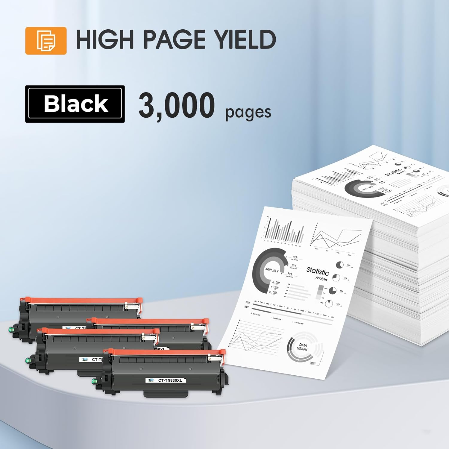 • Package Contents: 4 Pack TN-830 TN-830XL Black Toner Cartridge for HL-L2460DW DCP-L2640DW Toner Printer