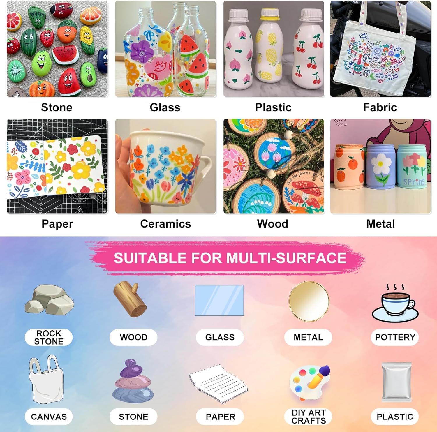 • Multi-Surface Use: This acrylic paint pen has a strong covering power, perfect for a variety of surfaces including stone, ceramic, glass, wood, fabric, metal, plastic, and more. Great for crafting, labeling, and adding creative touches to sneakers, pottery, and terracotta