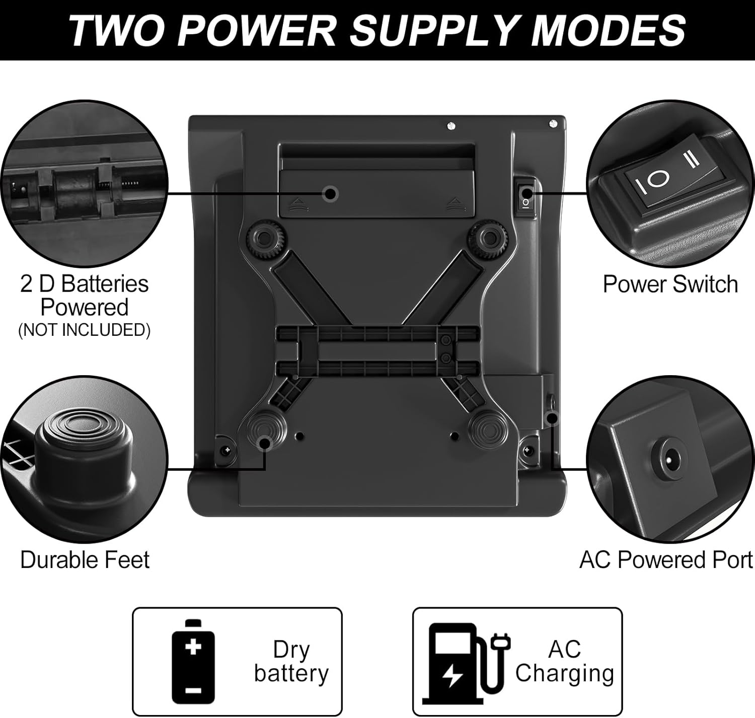 • 【Two Power Supply Modes】:AC charging powered (AC adapter included) or two D batteries powered(NOT INCLUDED!!!). You can operate this digital produce scale cordless for outdoor use, or with an AC plug for indoor use