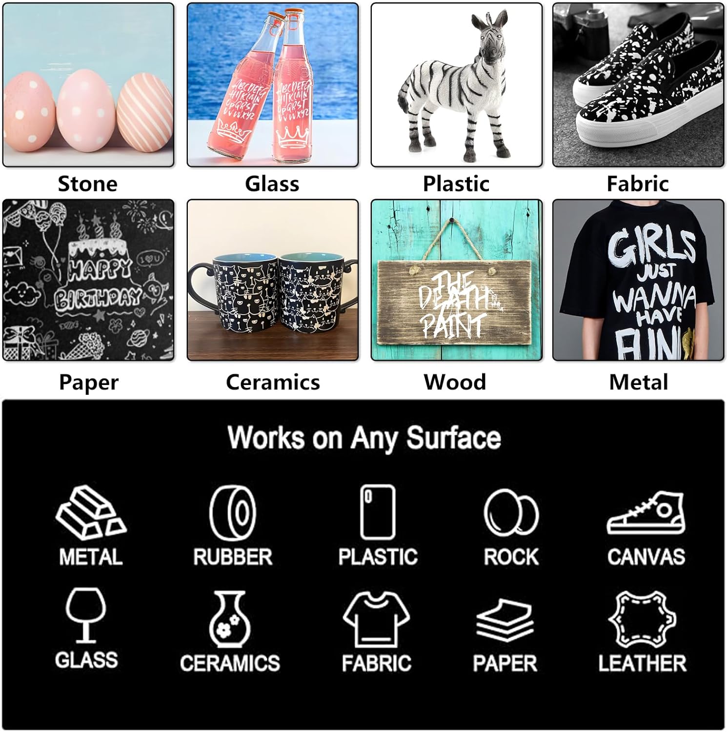 • Multi-Surface Use: This acrylic paint pen has a strong covering power, perfect for a variety of surfaces including stone, ceramic, glass, wood, fabric, metal, plastic, and more. Great for crafting, labeling, and adding creative touches to sneakers, pottery, and terracotta