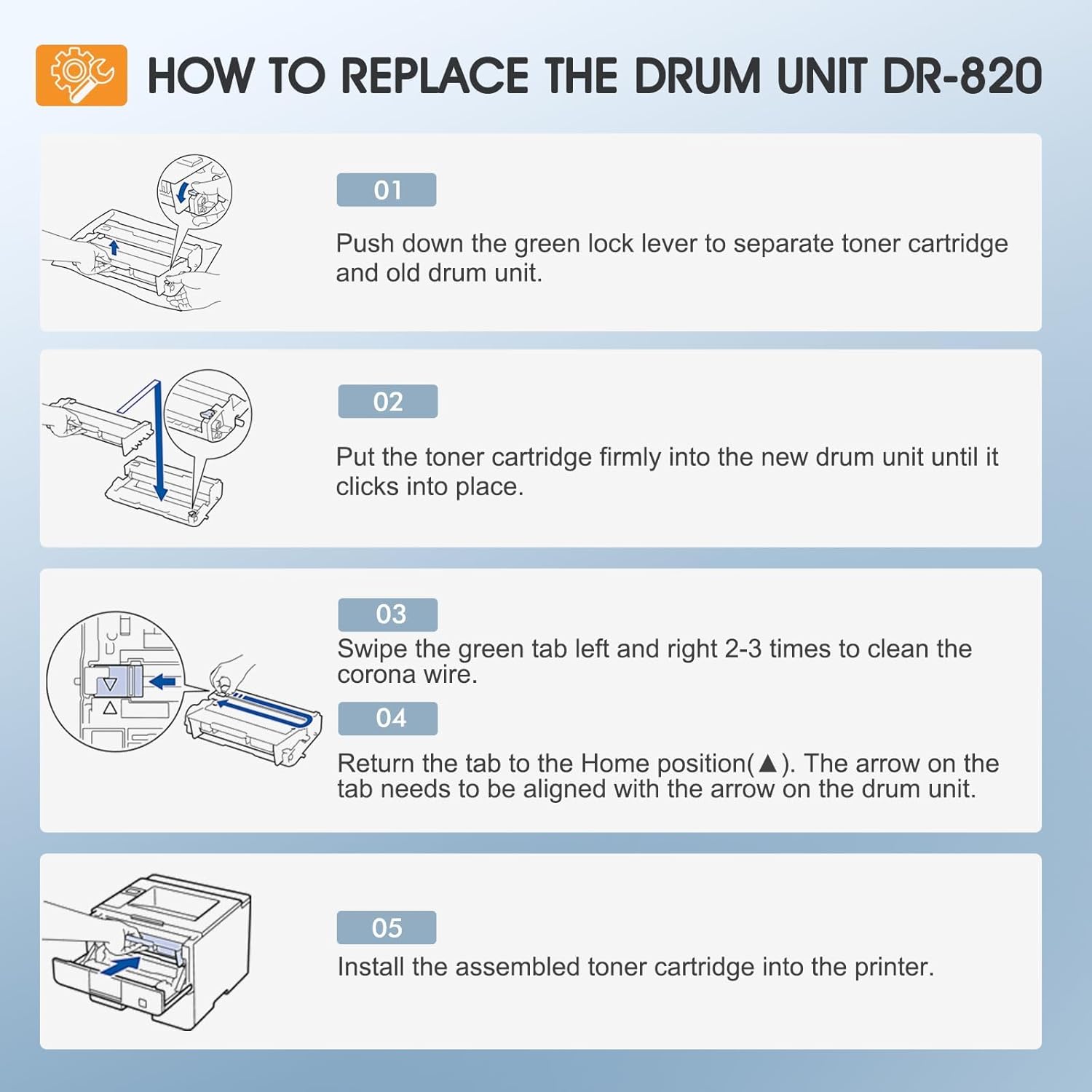 • Included: Cool Toner Compatible for Brother DR820 DR 820 DR-820 Drum Unit 2 Pack (Not toner cartridge), and needs to be used together with TN820/TN850 toner cartridge