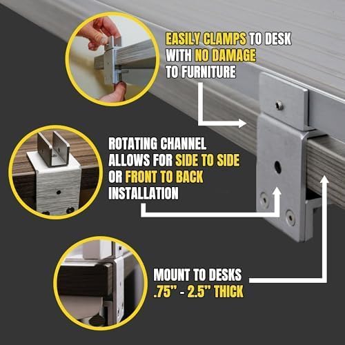 • CUSTOM SIZES AVAILABLE: Comes in various polycarbonate desk privacy panel color options. Adjustable mounts work on tables from 3/4″ to 2.5″ thick; Install or remove with no damage to tables in less than 5 mins. Available sizes in 3 heights and 8 widths.
