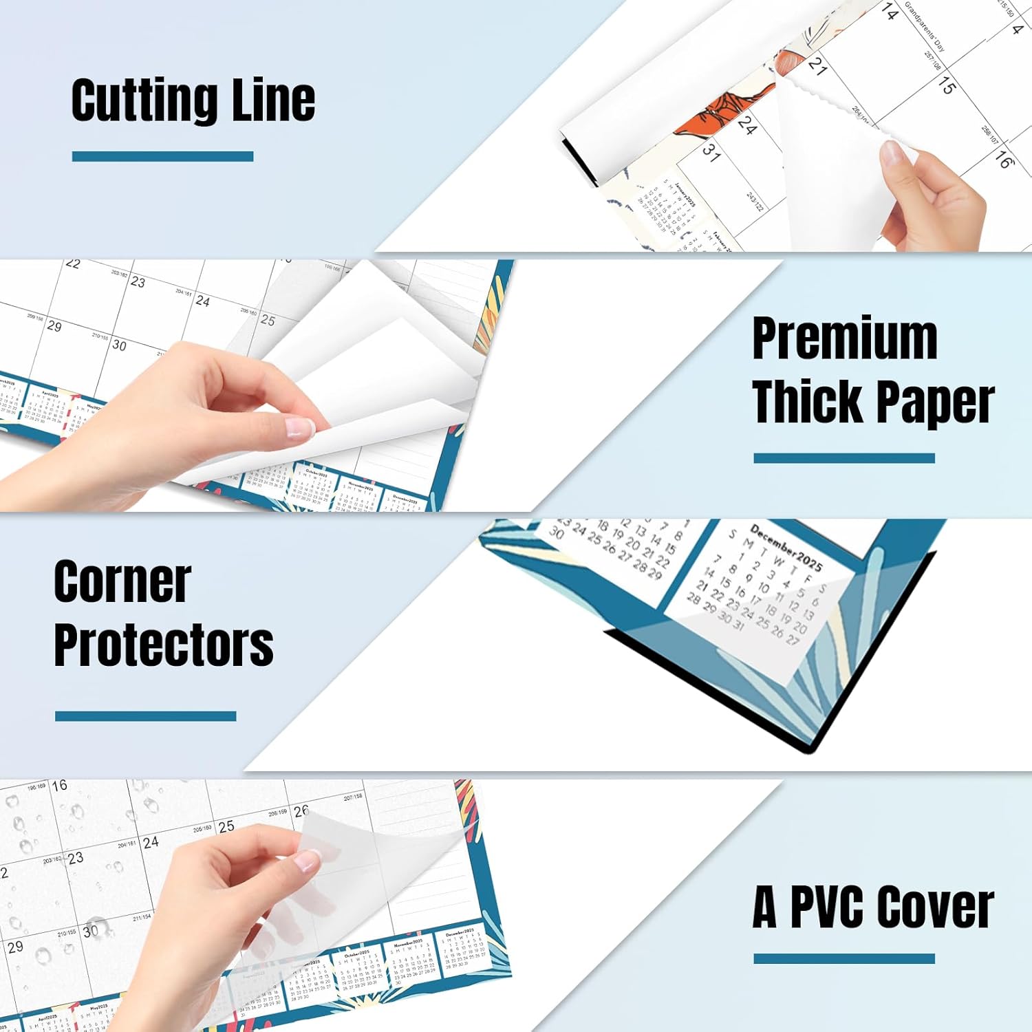 • ✨【Transparent Plastic Cover】Our desk calendar 2025 with clear plastic cover protects the calendar from accidentally tipped coffee or water wetting the papers,Two corner protectors are included to keep the pages flat( tips : Writeable after lifting the cover)