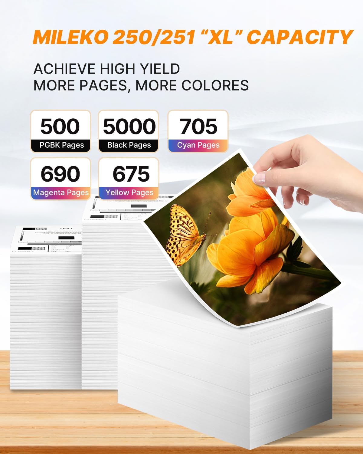 • 3.Page Yield: Up to 5000 pages for per 251XL black ink cartridge, 500 pages for Per PGI-250XL 250XL PGBK Ink Cartridges, 675 pages per for 251xl ink cartridges for canon printers ( Cyan Magenta Yellow Ink Cartridges)