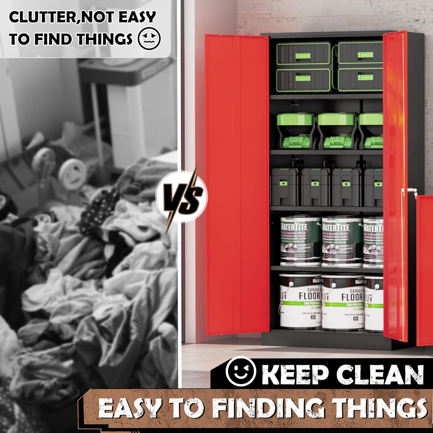 • ✅【Safe Locking System】Designed with 1 Lock and 2 keys, secure all of your items, better privacy, high safety. 2 keys for standby, if it is missing and just contact us to get replacement keys. More importantly,this garage storage cabinet is designed with protruding door handle, more convenient to grasp and easy to opening the metal office cabinet