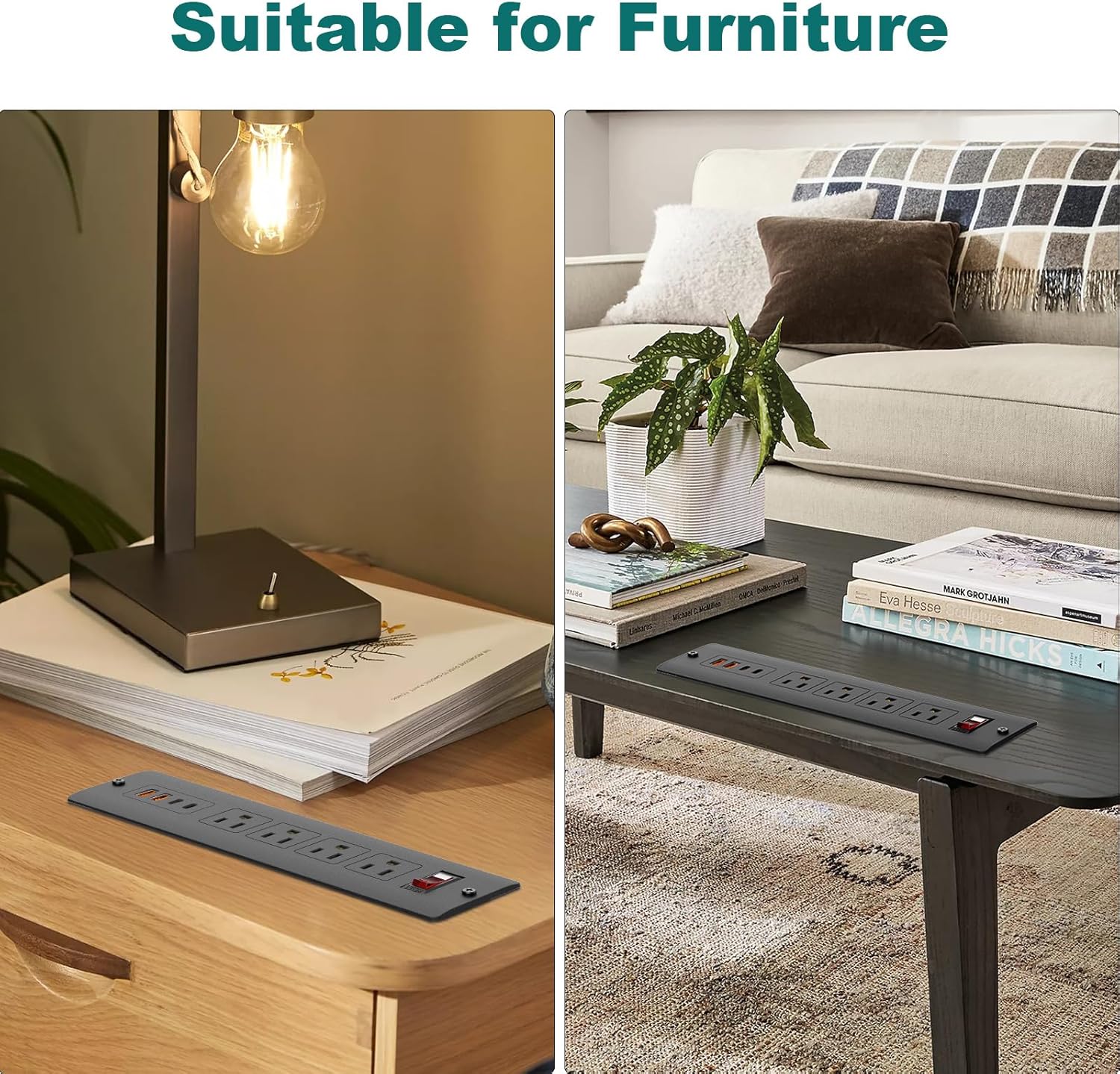 • 【Furniture Hidden Charging Station】Ideal for furniture integration, this mountable power strip fits neatly into drawers, side tables, or end tables. Use it as a drawer plug outlet or RV furniture outlet, offering convenient access to power without clutter.