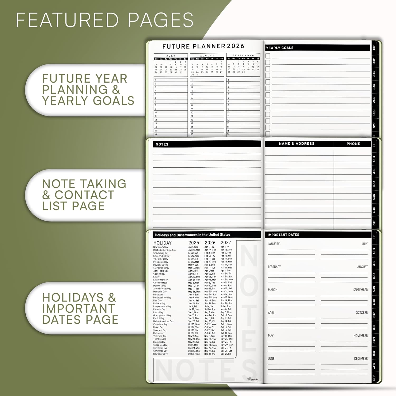 Ensight 2025-2026 HARDCOVER Leather Planner Weekly & Monthly - 8.5x11 Inches - Academic Planner Business Personal or Student - Pen Holder, Thick Paper, July 2025 - June 2026 (Olive Green)