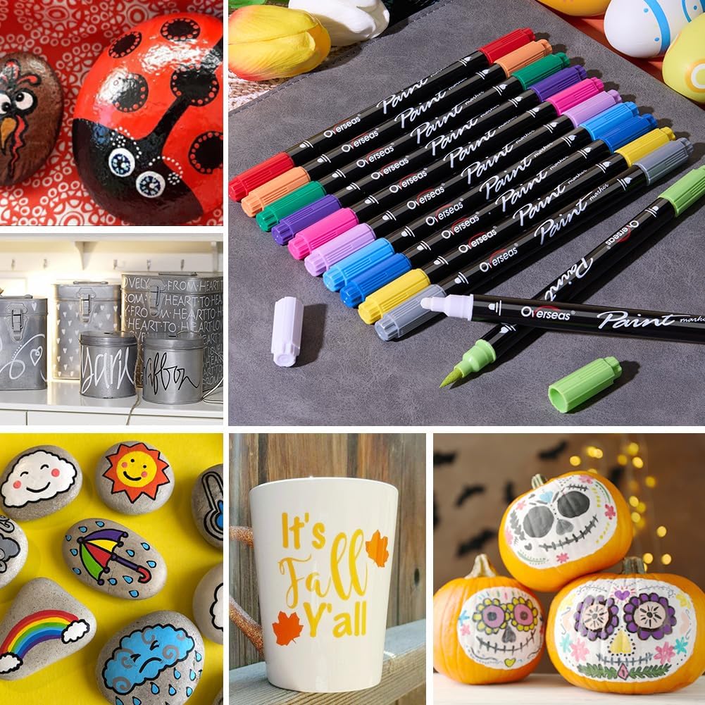 • Dual Tip Acrylic Markers: Each paint pen come with a brush tip and a round dot tip. With the unique and convenient dual tip design, these paint markers can meet various needs. Suitable for both beginners and professionals to use at home, office or outdoors