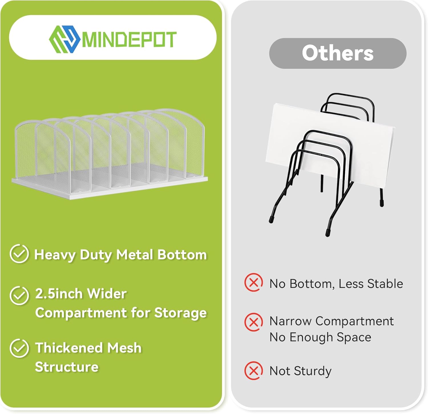 • Stable Iron Plate Bottom: The bottom of this file organizer for desktop is made of iron plate, ensuring stability and durability, which provides a sturdy foundation for the organizer, making it more reliable than those with mesh bottoms