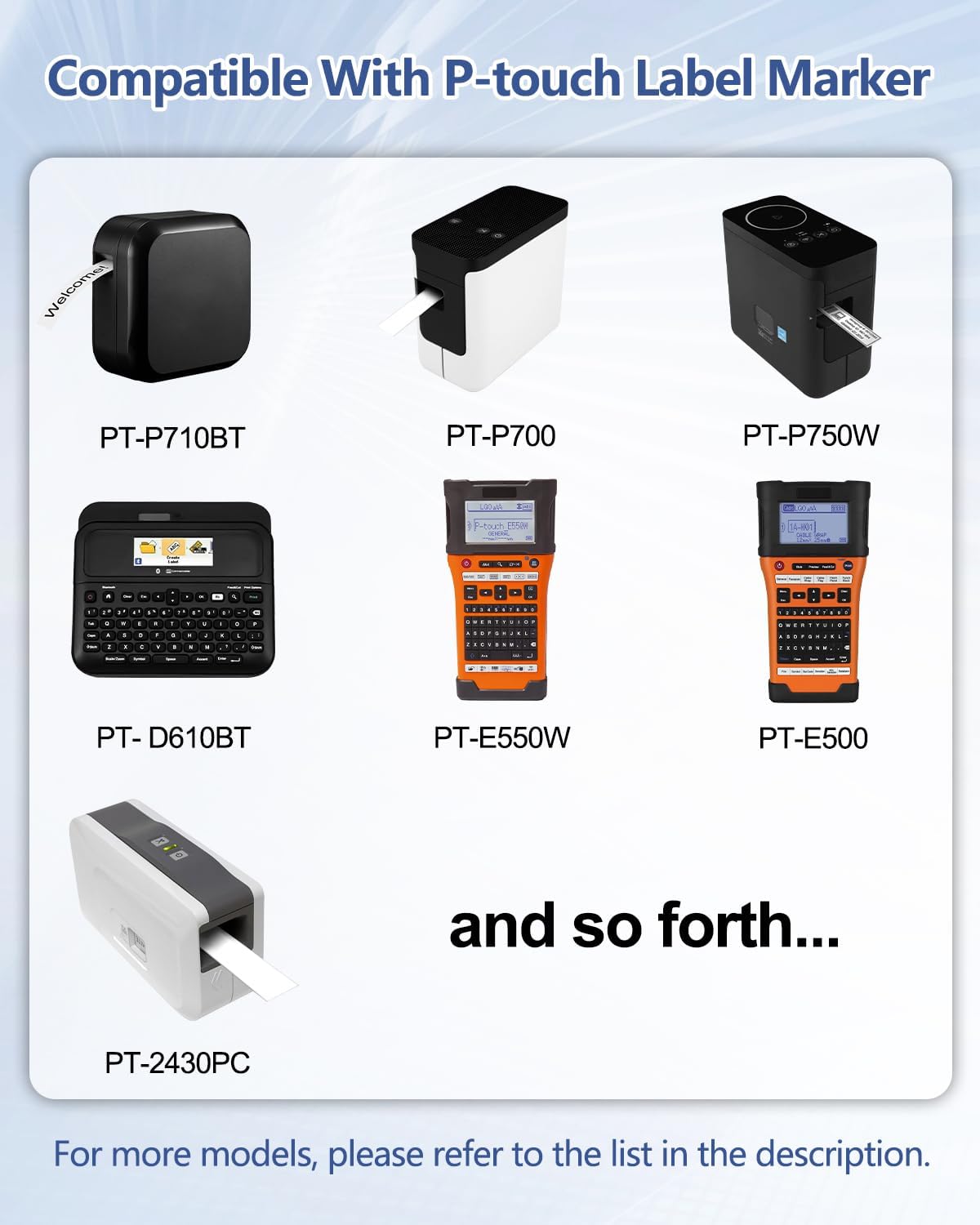 • Compatible with P touch Printer: PT-P900W, PT-P950NW, PT-P710BT, PTD400AD, PT-P700, PTD600, PT-1890C, PT-1890SC, PT-1890W, PTD600VP, PT-P750W, PT2730VP, PTD450, PT1880C, PT-1880, PT-18R, PT-E300, PT-H300, PT-H300LI, PT-H500LI, PT2730, PT-2430PC, PT-2300. For more, please see the description below.