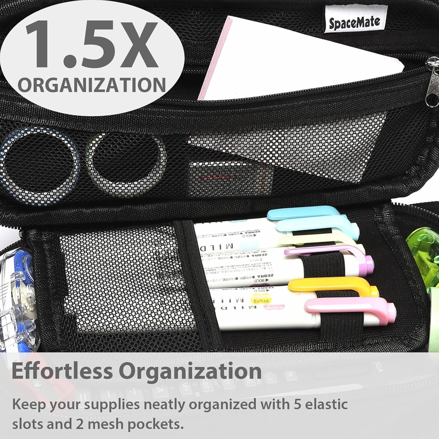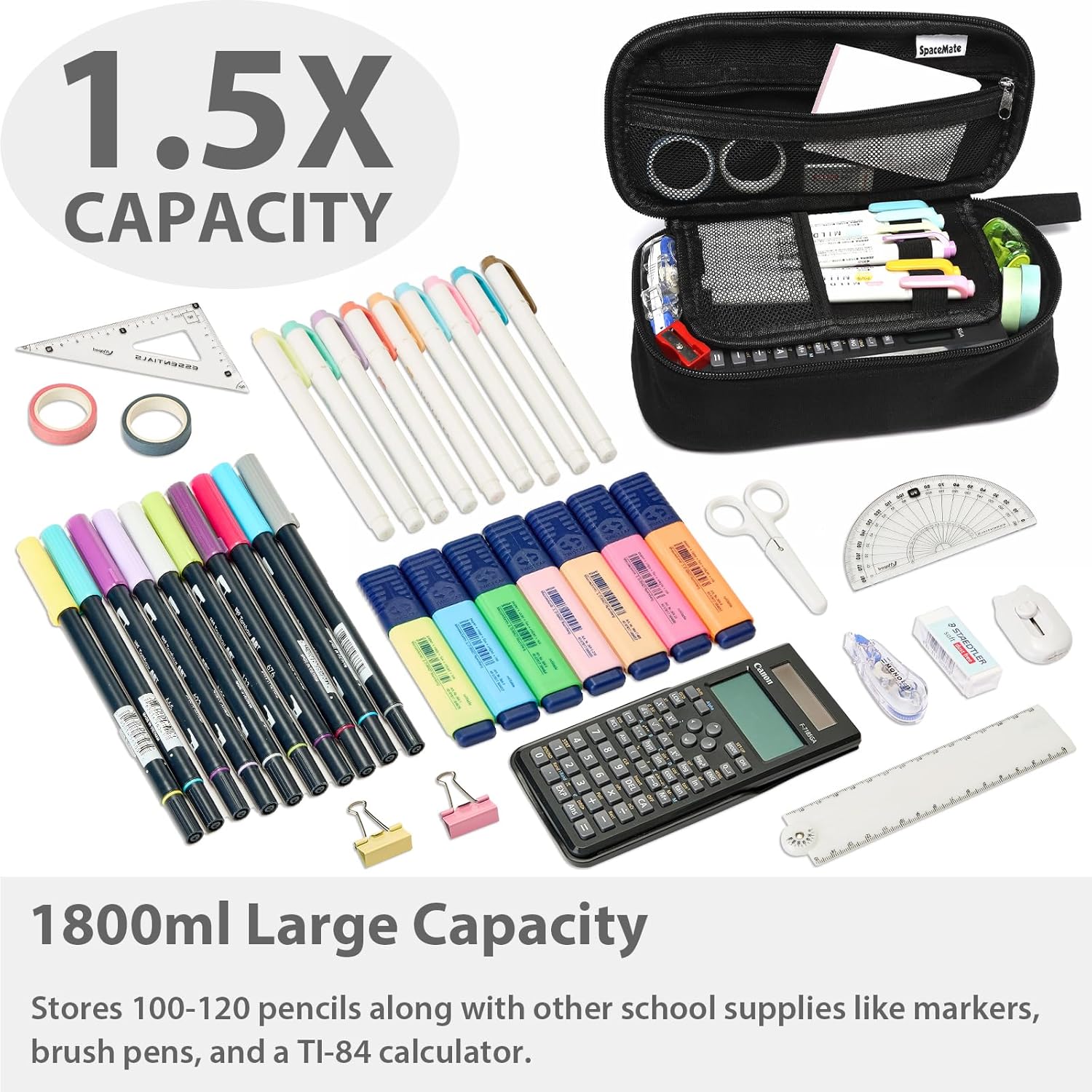 • 1.5X Large Capacity - SPACEMATE pouches have a capacity of 1800ml, is 1.5 times more than others (1000ml). It is easy to store 50-100 pencil, and also can store many kinds of school supplies, such as markers, brush pen, ruler, small notebooks, charger and TI-84 calculator.