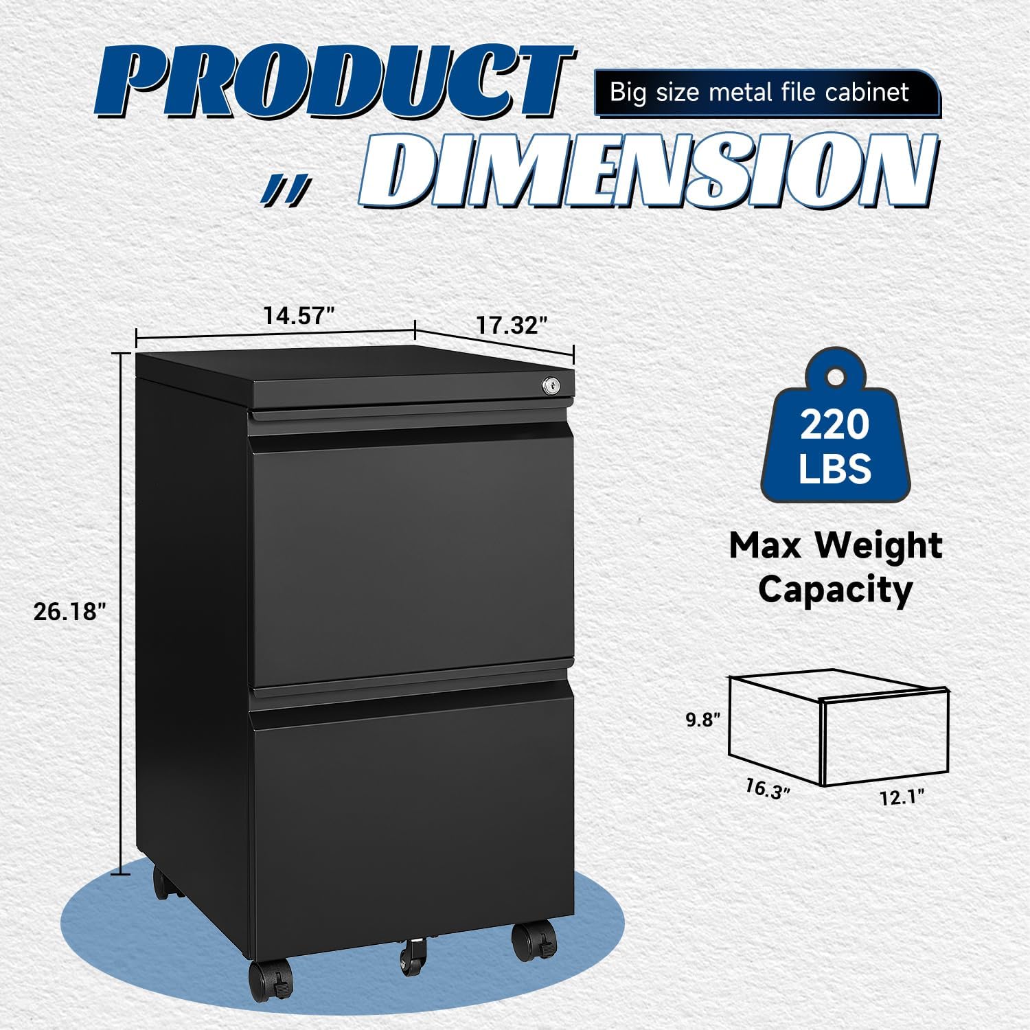 • MOVABLE FILE CABINET - With the five 360°rotating foot wheels on the filling cabinet, your can easily move this metal file cabinet, and all the wheels are made of high-strength plastic, which can support metal cabinets filled with files.
