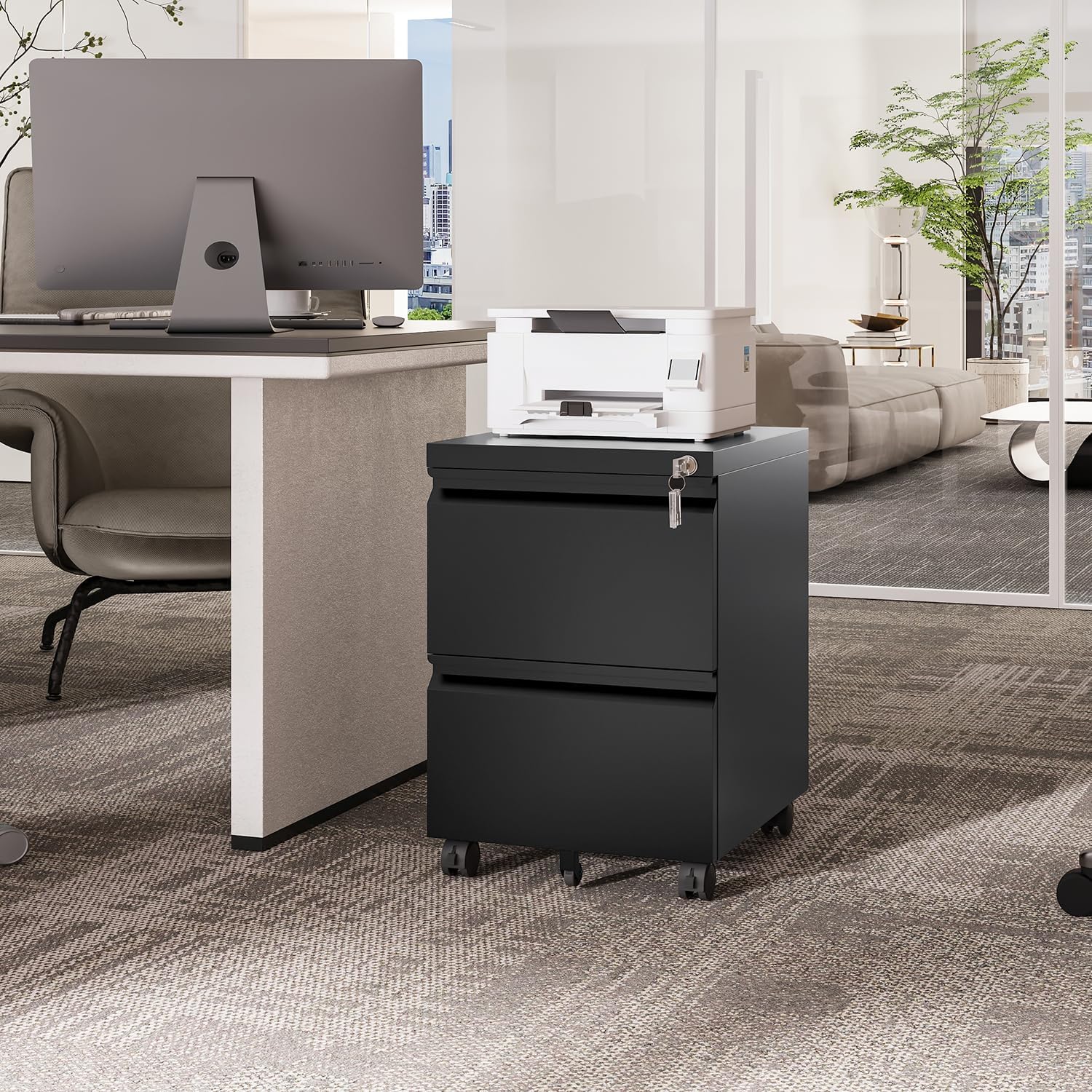 • CAN BE PLACED EVERYWHERE - Thanks to the compact design and five flexible wheels of this filing cabinet, you can easily putting it under the desk, next to the sofa, in the bedroom to using as a under desk file cabinet, a bedside tables etc.
