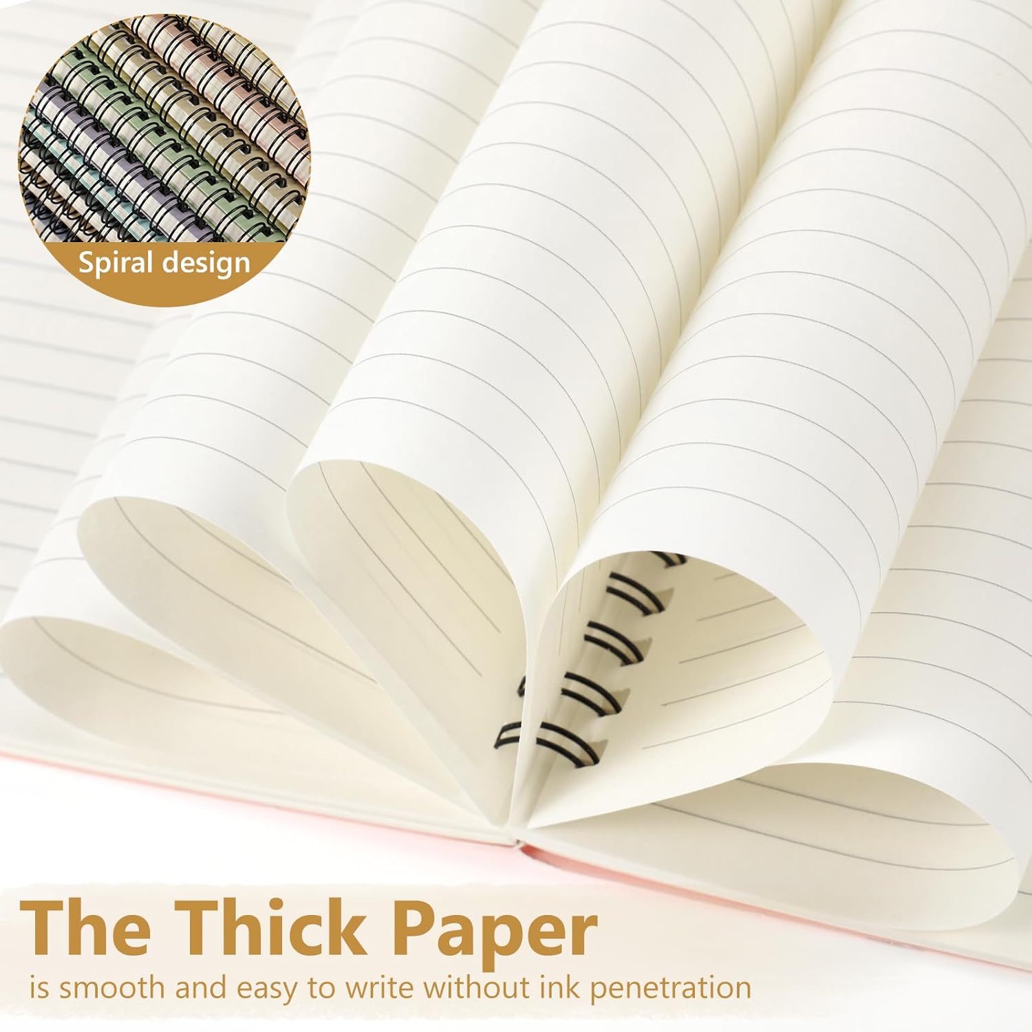 • Smooth to Write: each spiral journal notebook has 60 sheets (120 pages), and each page adopts quality 80gsm white paper, smooth and easy to write, preventing ink infiltrating into the next page, and mild colors can avoid eye fatigue and bring comfortable experience