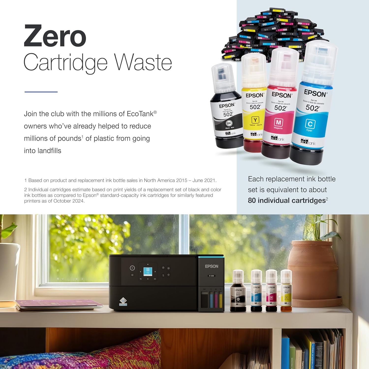 Epson EcoTank ET-2980 Wireless All-in-One Color Supertank Printer with up to 3 Years of Ink, Refillable Tanks, Perfect for Home, 15 PPM, 1.44" Color Screen, Auto 2-Sided Printing - Black