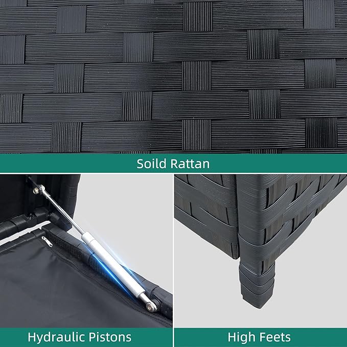 • Enhanced Structural Stability: Built with advanced PE rattan, our design stays strong and keeps its shape even in high temperatures, avoiding the bulging sides you often see in resin deck boxes.