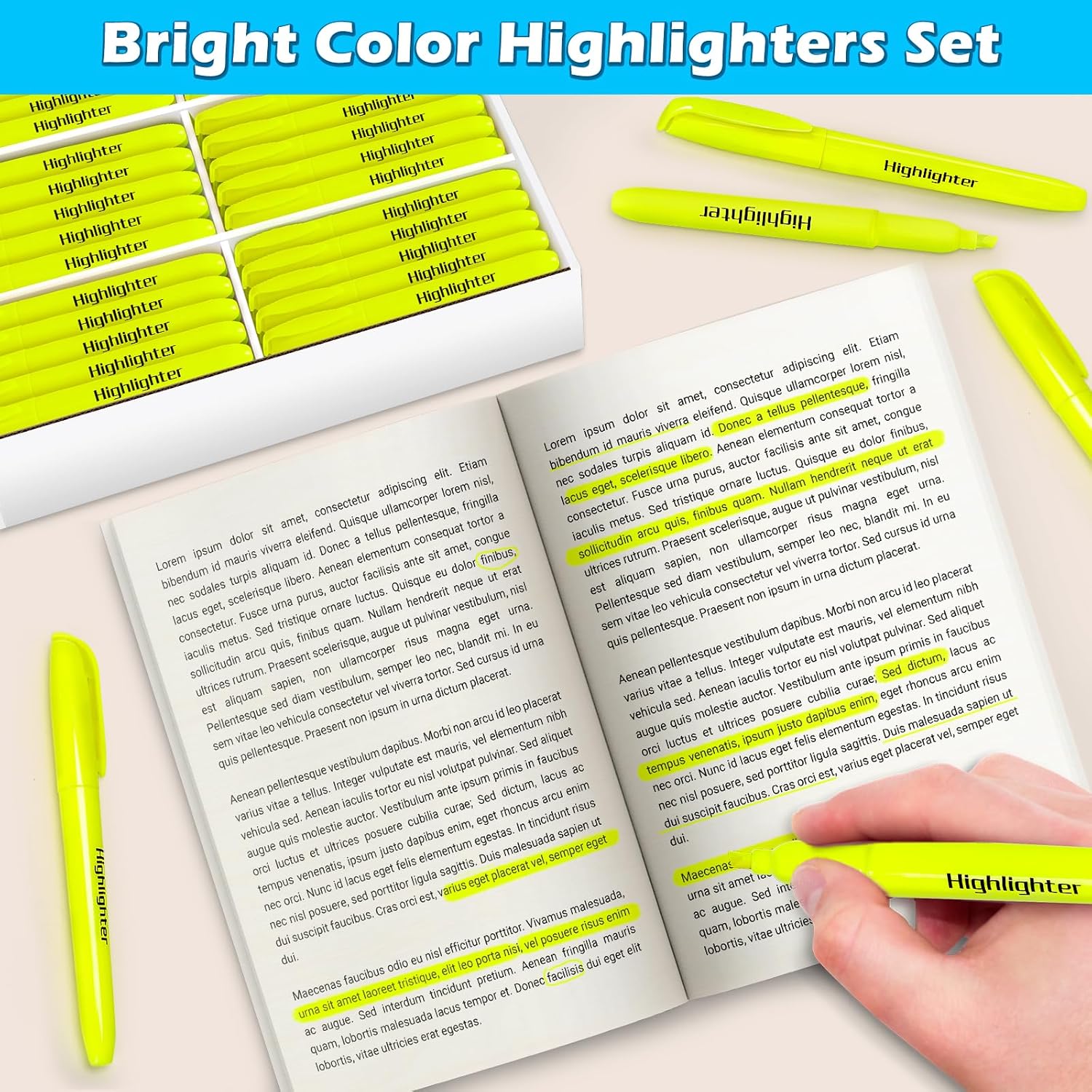 • Yellow Highlighter Sets: 108 Count highlighters bulk to help you classify different topics or concepts.Perfect for color coding and highlighting favorite book passages or notes. If you are looking for smooth, pretty, light fluorescent yellow highlighters, then these will not disappoint.