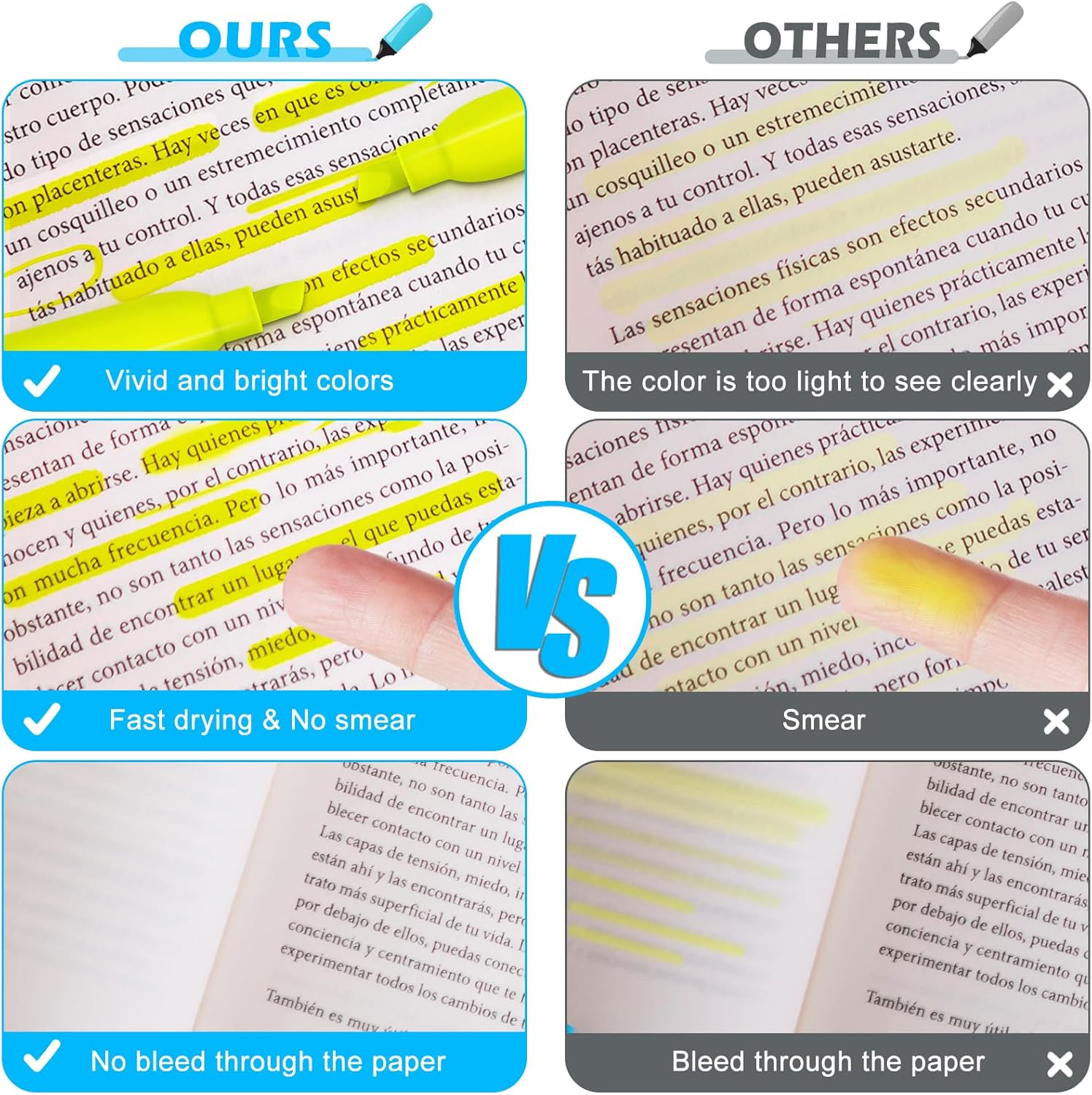 • Fast Drying & Durable: The highlighters pens use durable, quick-drying ink, allowing highlighted marks to be clearly visible without worrying about the ink staining your hands and books. Each highlighter is equipped with a pen cap to avoid ink from drying out for long-lasting use. Please remember to be sure after use keep the pen cap closed to prevent the ink from drying out.