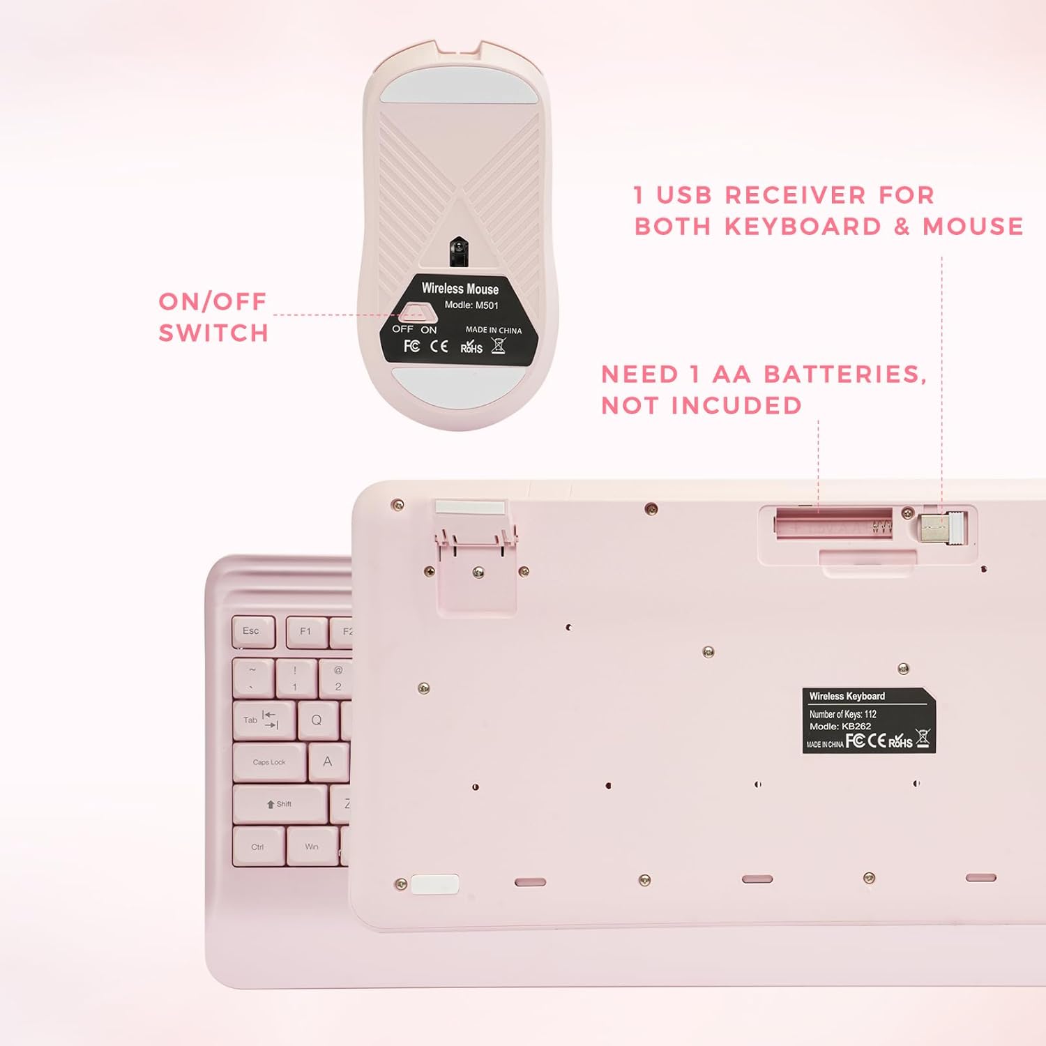 • Comfortable Wireless Keyboard Mouse Combo: This wireless keyboard mouse combo has a comfortable touch and typing feel, this wireless keyboard design with palm rest and folding holder that can protect your wrists from injury even when typing for a long time. Note: The USB receiver is in the battery compartment of the keyboard, you can find it when open the keyboard battery cover