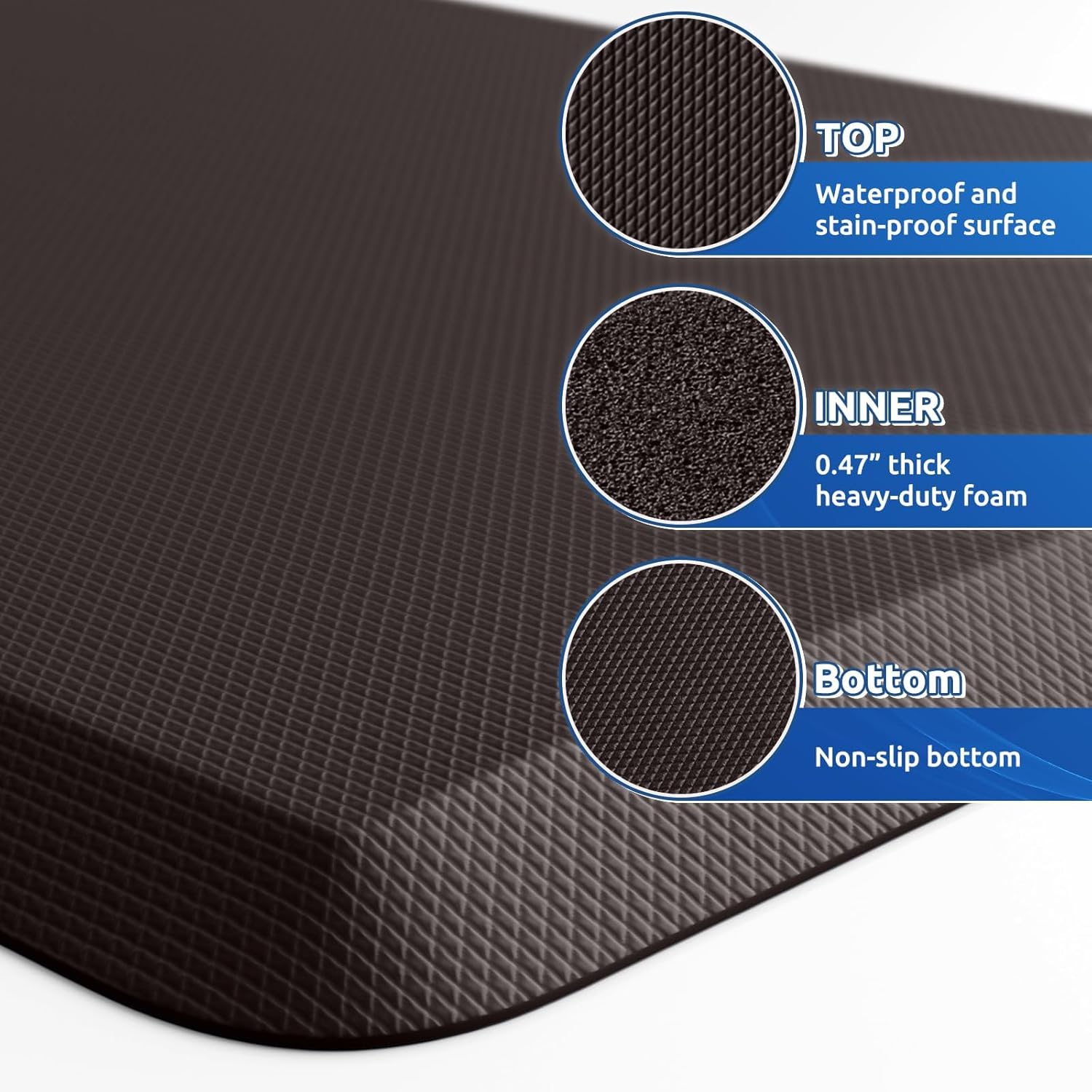 • EASY CARE: The anti-fatigue kitchen mat's surface is resistant to dust and debris. Its waterproof and stain-resistant material ensures easy cleaning with just a damp cloth, vacuum, or sweep, saving cleaning time and extending the mat's lifespan